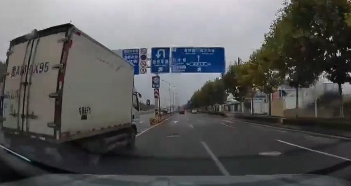 昨天早上,崔先生驾车在贵阳市同城南路和黎阳大道的匝道处时,看到一辆货车在前方压实线强行变道,该危险举动迫使崔先生驾驶的正常行驶车辆紧急避让,险些酿成事故。