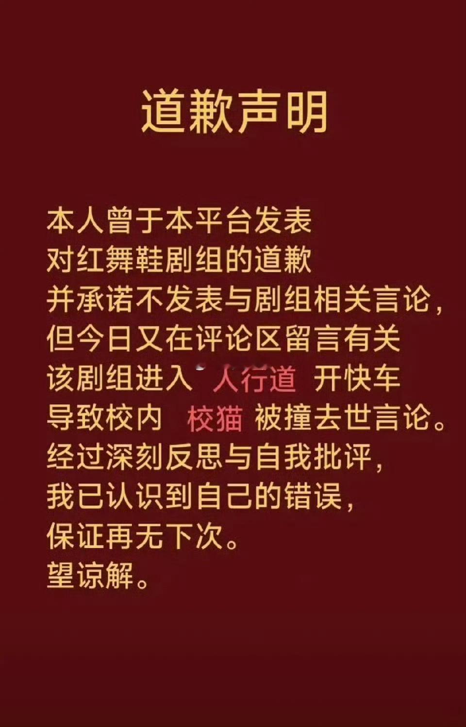 网友给红舞鞋剧组道歉网友向红舞鞋剧组道歉 网友给红舞鞋剧组道歉,称剧组和学生交流过程中态度谦和、无强迫个人意愿的行为。