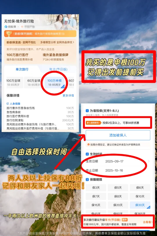 对了,这可是连领事馆都有加在申根签证材料条件里的投保要求,出行前必须要购买达到3万欧以上的医疗保险呢!(当然我买的这款妥妥的是符合投保要求滴!)