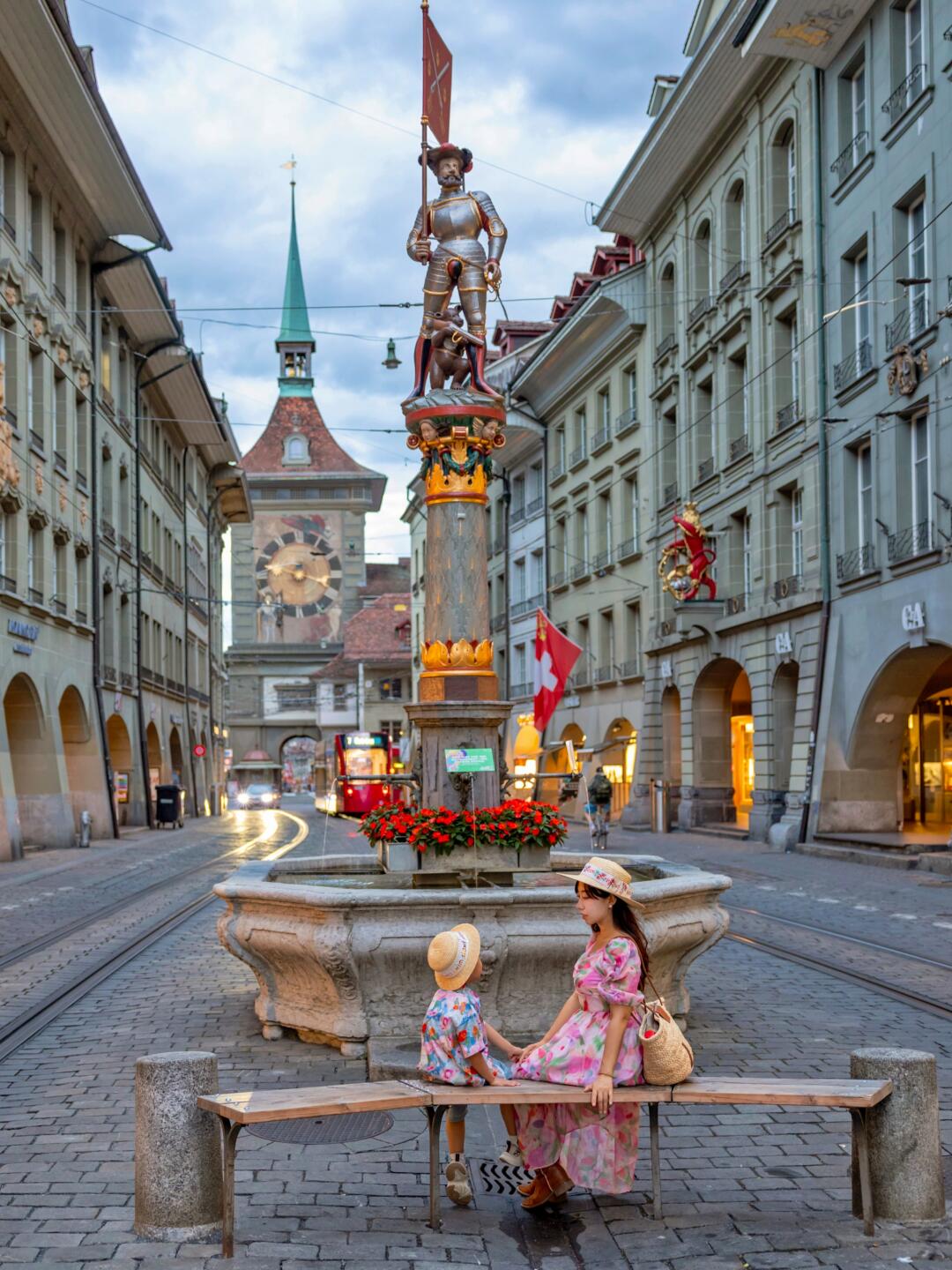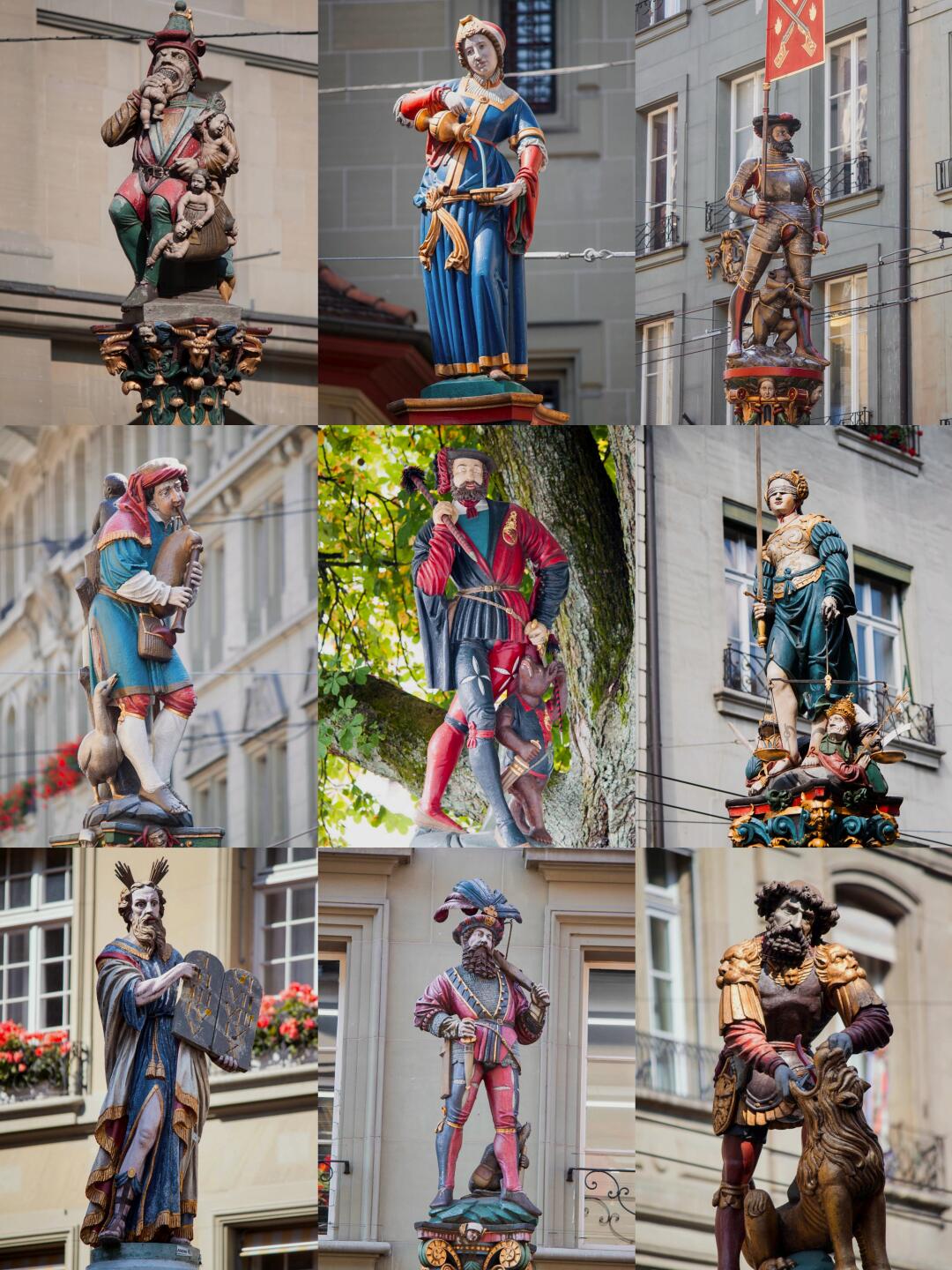 伯尔尼也被称为泉城,漂亮的喷泉居于老城主街,建于16世纪。喷泉顶端的雕塑各不同,每个都有一段传说。喷泉流出的水是阿尔卑斯山引来的山泉水,清澈甘冽可直接饮用⛲