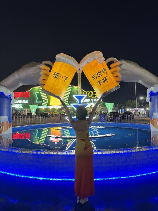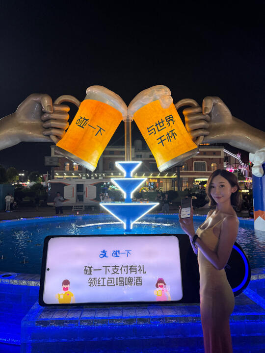 今年啤酒节必打卡的装置出现了!!这个支付宝的碰杯大装置,碰一下不仅能开启喷泉互动还可以领啤酒节红包,现场就能用上