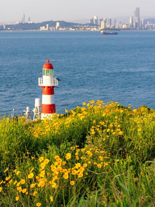 红色灯塔超美,还能看到海对岸市南的建筑