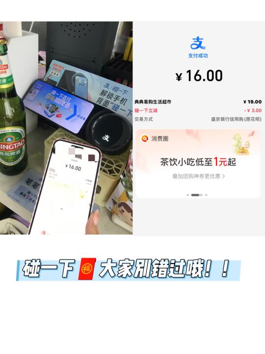 ✔️18、19号两天在青岛消费,用碰一下支付享受一次2元立减