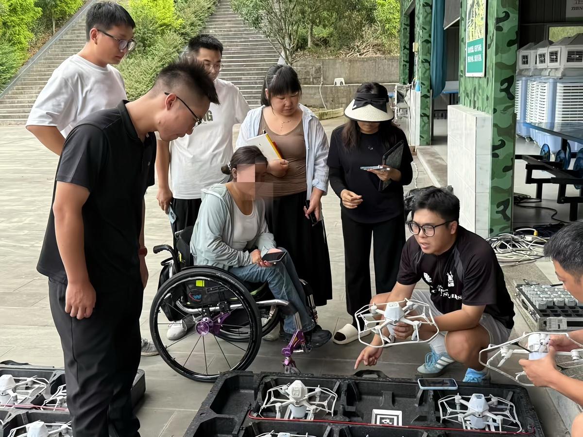 近日,在巴中市巴州区立森素质教育学校里,无人机腾空而起,残疾人杨斌(化名)聚精会神地盯着监控画面、操纵无人机,一旁,同训的20多名残疾人学员跃跃欲试。紧抓新一轮低空经济发展机遇,今年4月,巴中市残联在巴州区启动首批残疾人无人机操作培训。杨斌得知消息后立刻报了名。