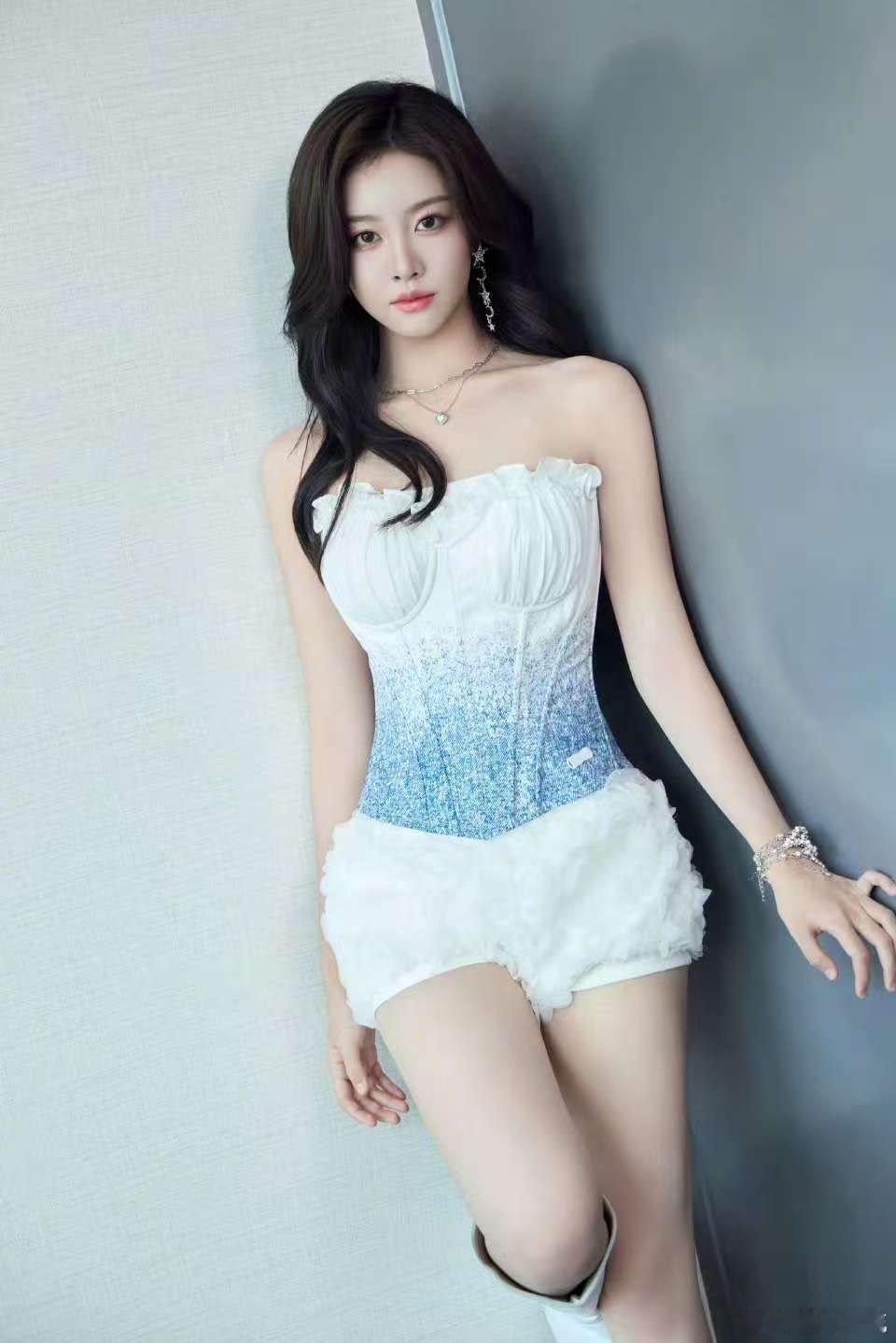 蓝白渐变yyds!清冷感与高级感双在线,纱裙飘逸灵动,吊带抹胸尽显风格,团照统一配色却各有特色,蓝调美学被RED玩明白,今晚大秀期待值拉满!
