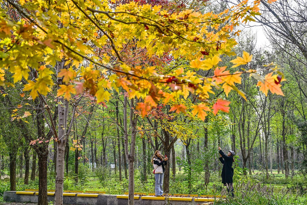 本报讯(记者冯维静)昨天一早,薄雾还未散尽,位于西集镇北部的千亩市级近自然生态林养护示范区已被秋意唤醒。红枫枝头晕染出深浅不一的绯色,与黄绿交织的银杏枝叶相映成趣;3.9万余平方米地被植物间,黄菊花顶着露珠开得热烈,金黄花瓣与刺槐的浅黄、旱柳的橙红、油松的墨绿错落铺展。偶尔有喜鹊掠过枝头,落在花丛间——这幅层次分明的秋日画卷,正悄然成为京郊赏秋的新焦点。