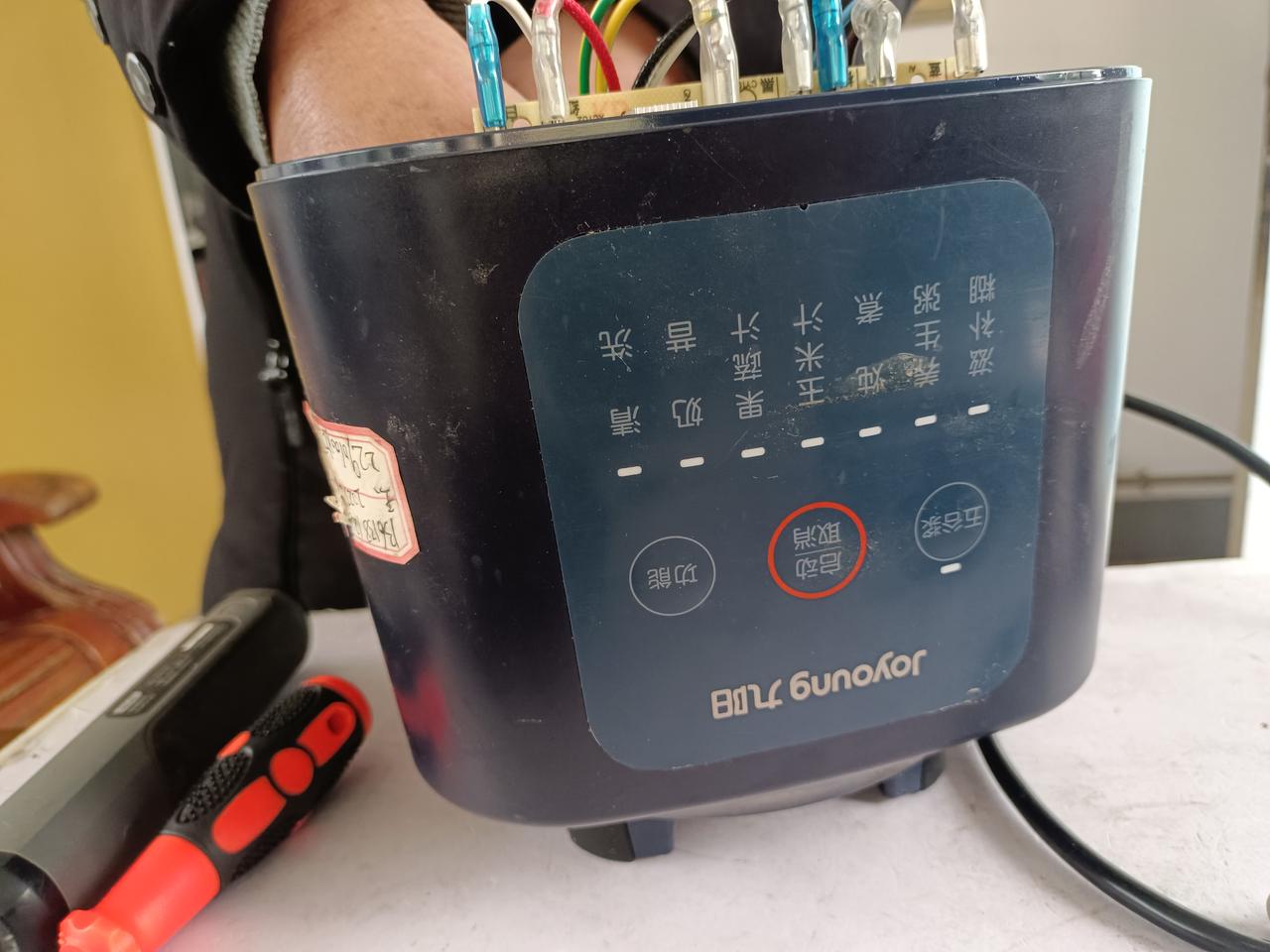 过日子就得这样,能省就省点吧。 都说挣钱越来越难了,可大小家电的维修费用却越来越高。 买到家2年多的九阳豆浆机,使用不到20次就神经错乱了~工作还没干完就撂挑子。 加热,可以。 说明加热盘没问题。 打碎,可以。 说明电机和传动部分没问题。 那么问题应该是它的大脑~控制系统,也就是它的主板。 到售后一问,换个主板要100多,多多少?没继续问下去,心里盘算着不要你150也得120吧。 自己动手吧。 按照型号59块钱网购主板一块,剖开内脏,取旧换新,试机一次成功。 省了好几十块钱呢! 传说美国的人工费很高,家庭维修都是能自己动手就坚决不用维修工。