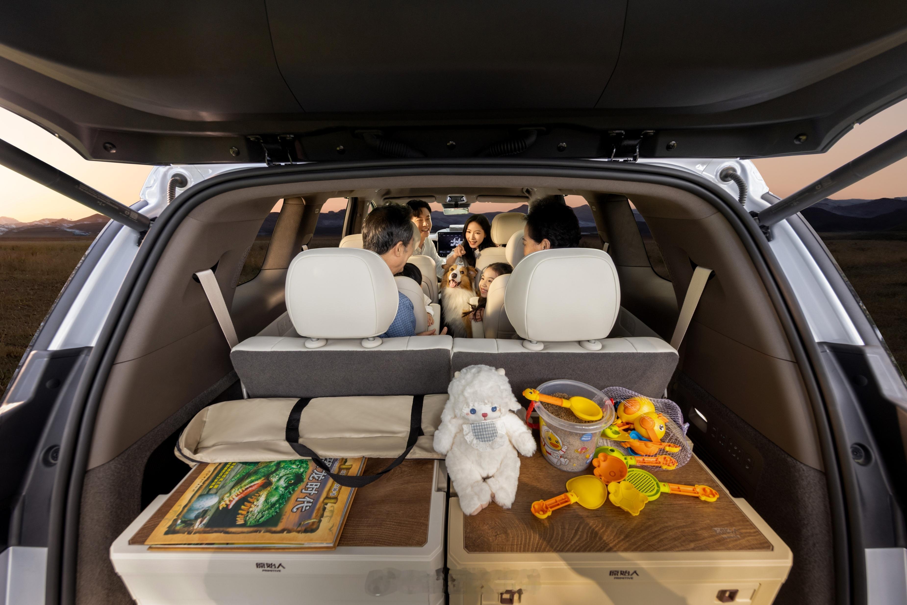空间和舒适性上也是一大亮点。5.2米车长配三排全电动豪华座椅,支持通风、加热、按摩和4+N种灵活组合,尤其是第三排配备加热功能和独立出风口,让每位家人都能找到舒适的坐姿。再加上全车49处储物空间和51升隐藏暗格,让全家物品都能妥善安放。