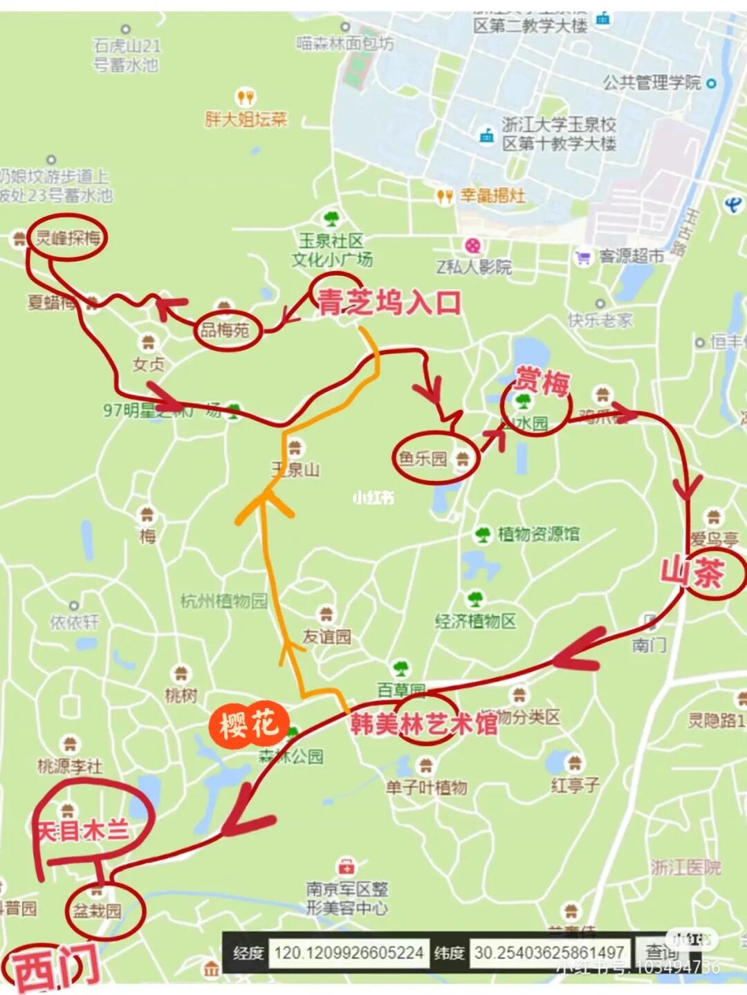 📍如果想去看天目玉兰,樱花,山茶花,可以直接从西门进