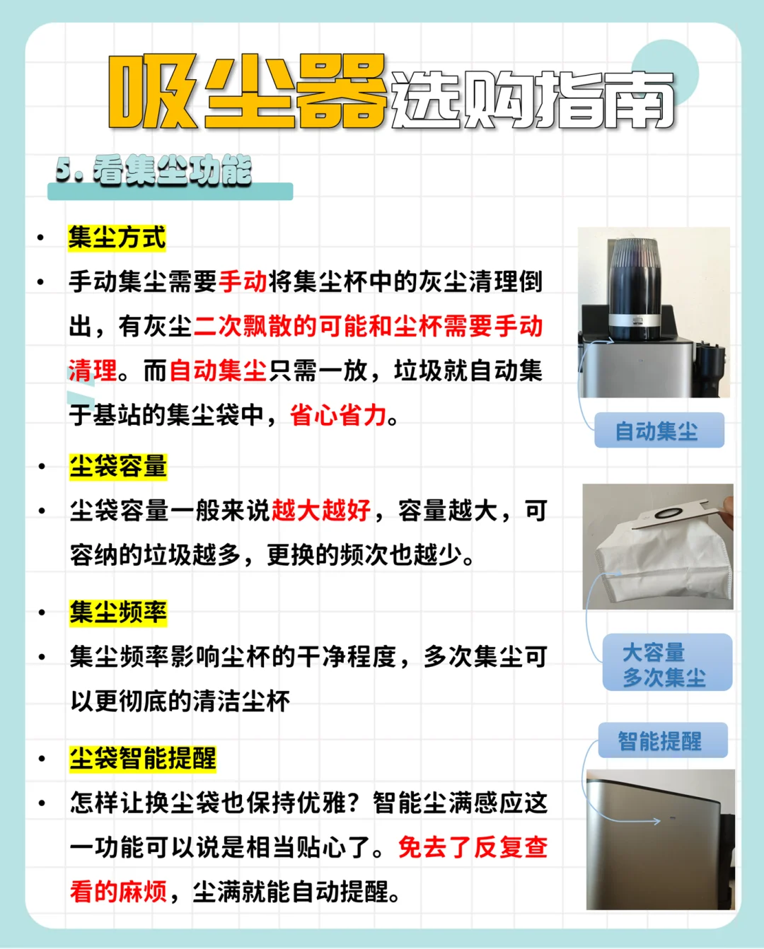 🔸智能尘满感应,免去了反复查看的麻烦,尘满就能自动提醒📣