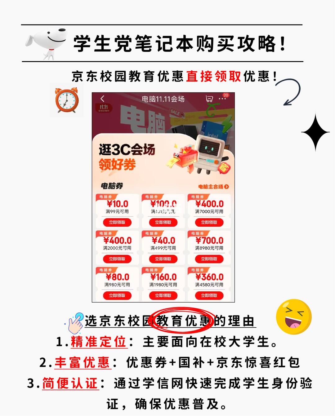 🏃🏻♀️小伙伴们最新消息!!11.11京东校园教育优惠已开启!京东推出了超值的教育优惠活动,🤓学生党想要入手电子产品的直接冲啊!!千万不要错过这次难得的机会!今天,陈哥将为大家精心挑选几款适合学生党的笔记本,真的是巨划算📶快来试试吧!