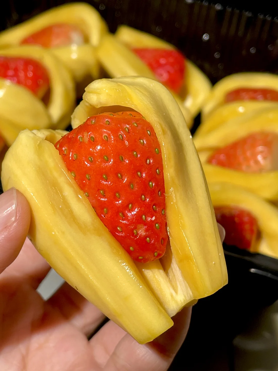 菠萝蜜➕草莓🍓 菠萝蜜香味混合着草莓香,酸酸甜甜的双重口感! 水果味道直接升级!!快去试试~