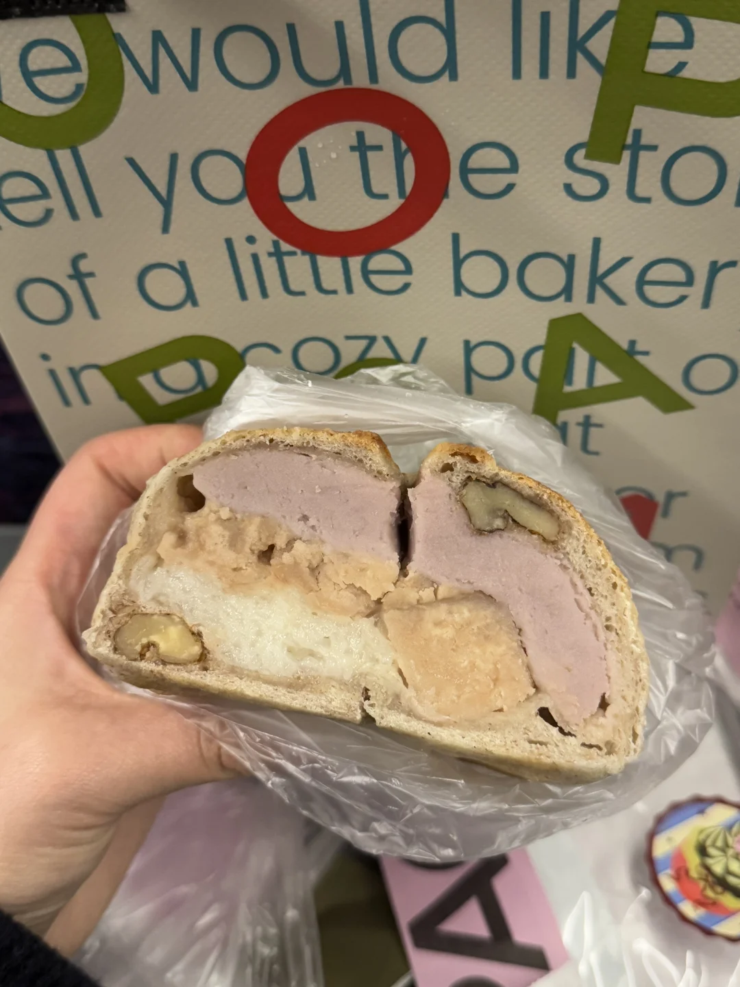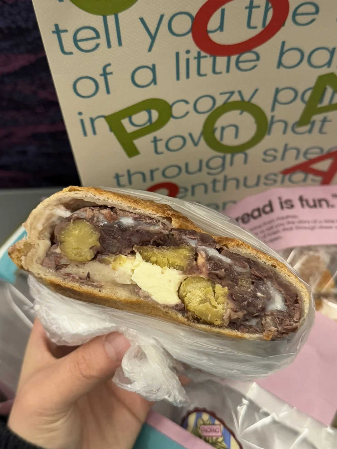 芋泥超级厚!很扎实的口感! 板栗超大一块!红豆口感沙沙的 真是好吃他妈给好吃开门,好吃到家了 下次想试试贝贝南瓜乳酪香蒜鸡的,看着也好好吃