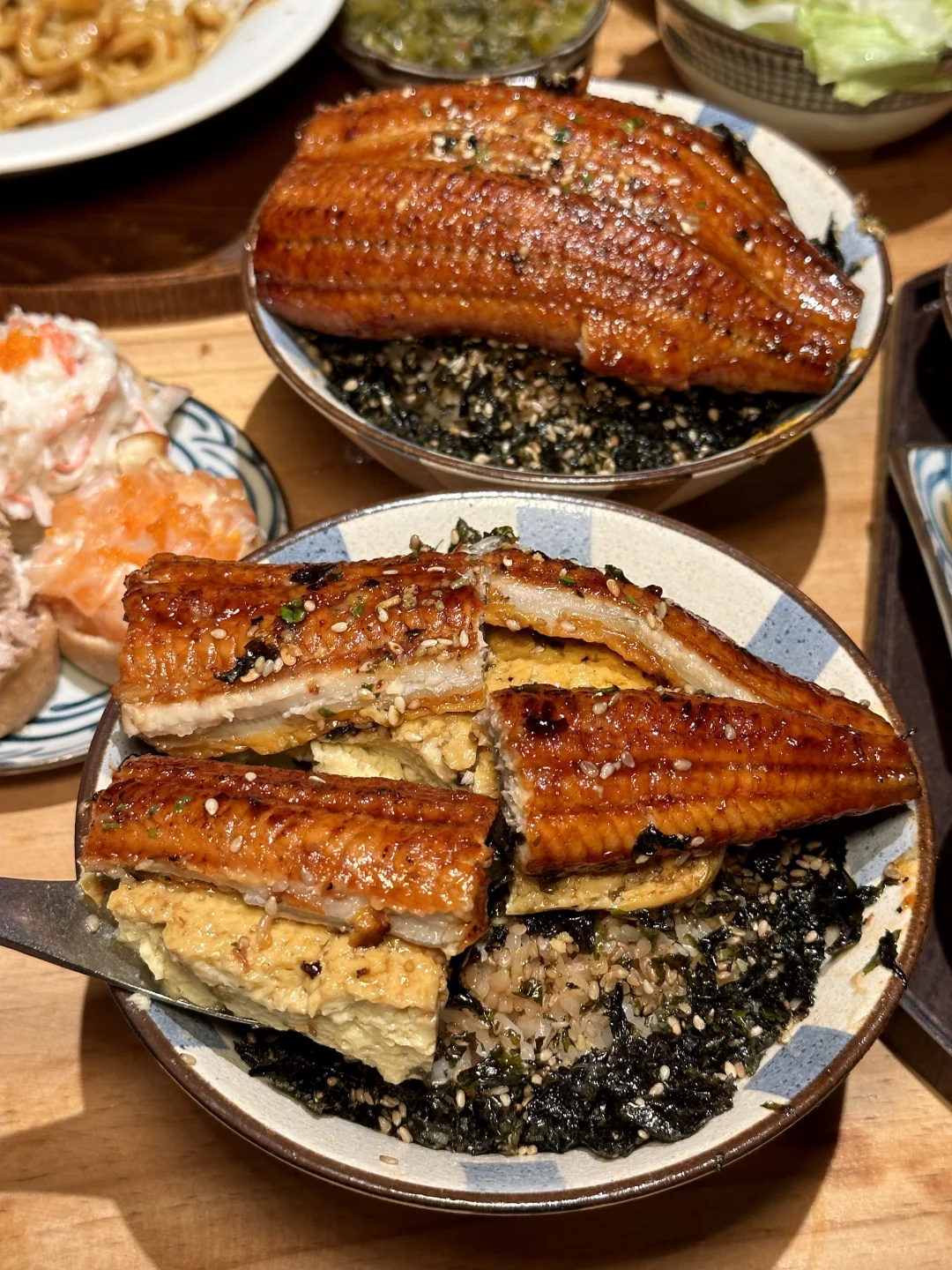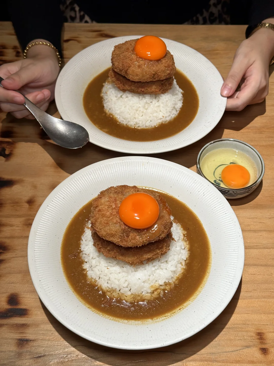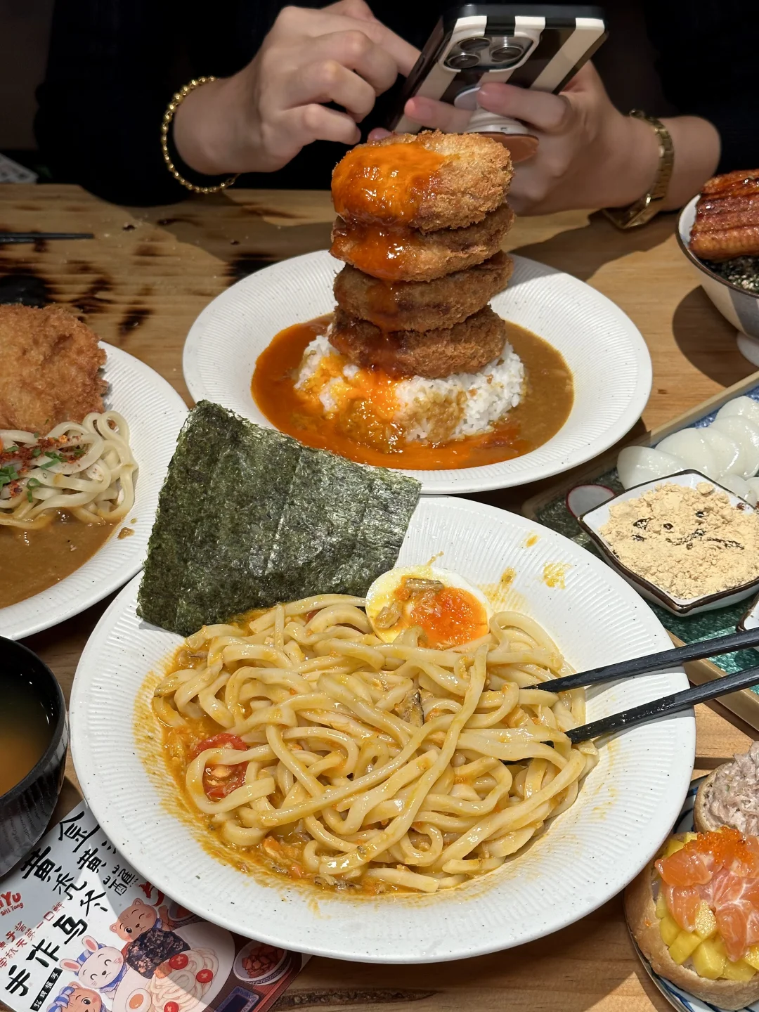 都去吃这个双层和牛肉饼饭!!!外层炸的tree tree的,里面肉饼很厚实,牛肉是7分熟的,所以很嫩很嫩!厚蛋鳗鱼饭真的是每次都会点,刚好遇上了这个季节超美味的蟹黄饭和蟹黄面,把我们4个吃爽了hhh,人均60左右的小食堂,值得跟好闺蜜反复去吃!!!