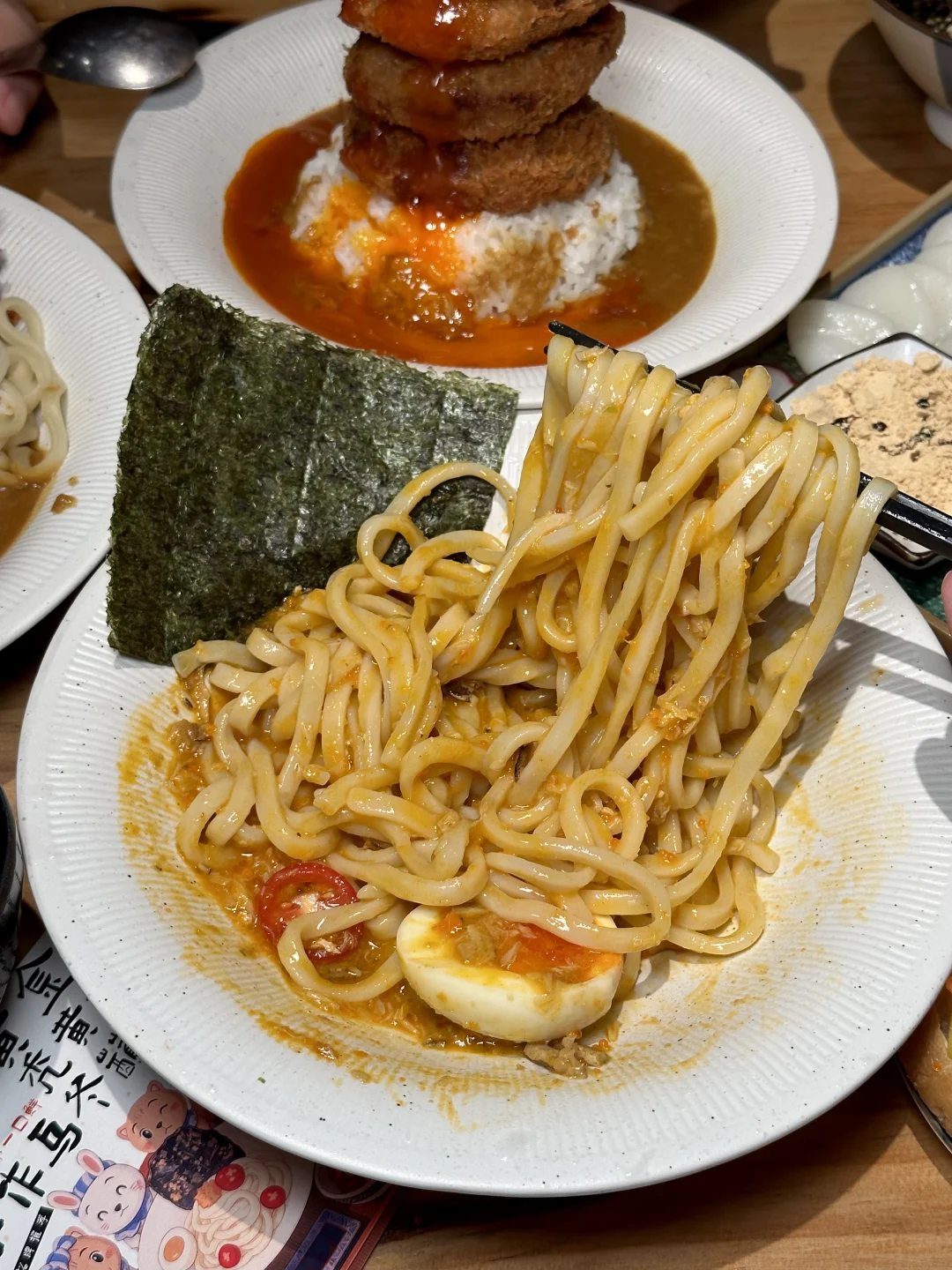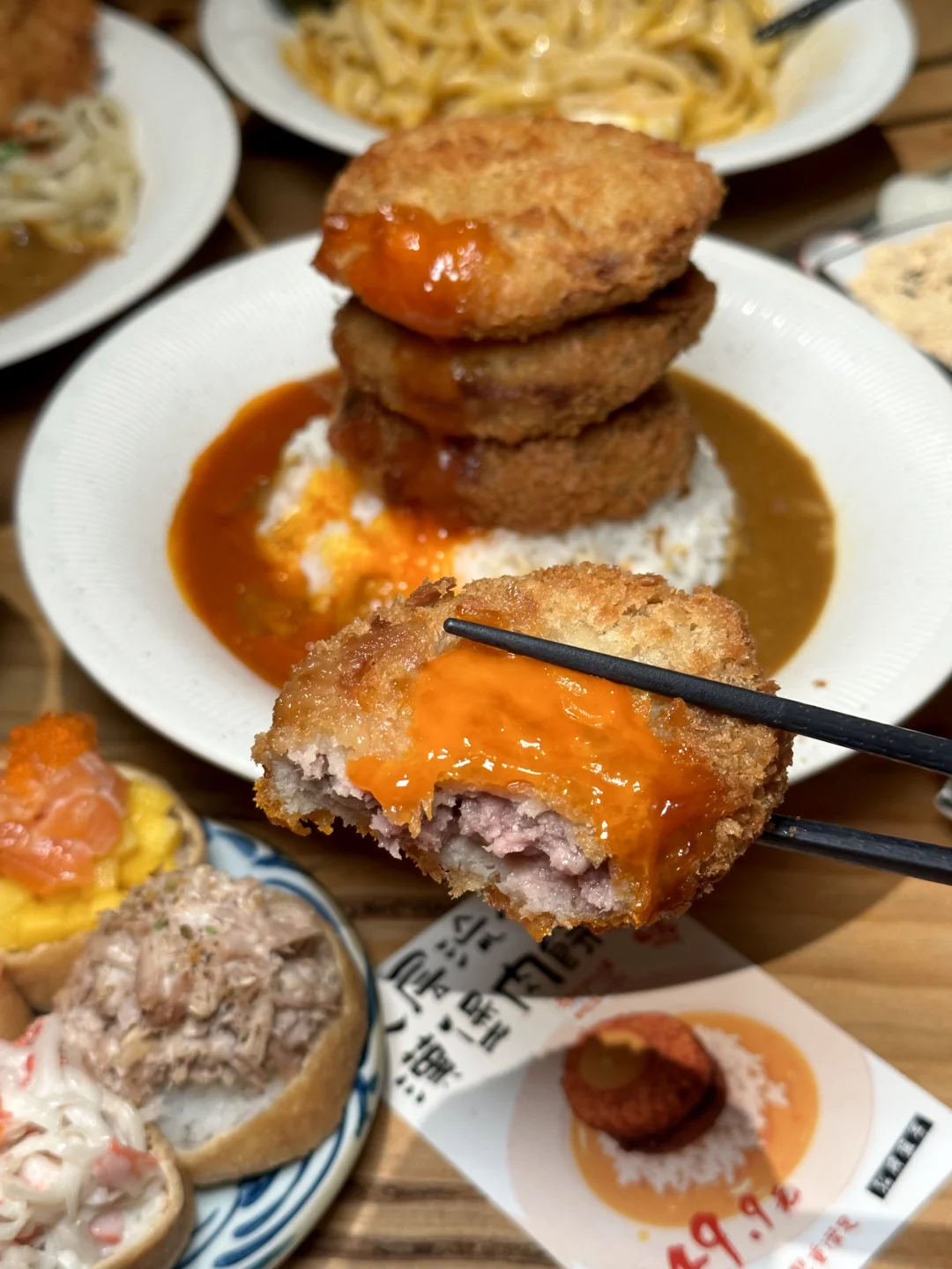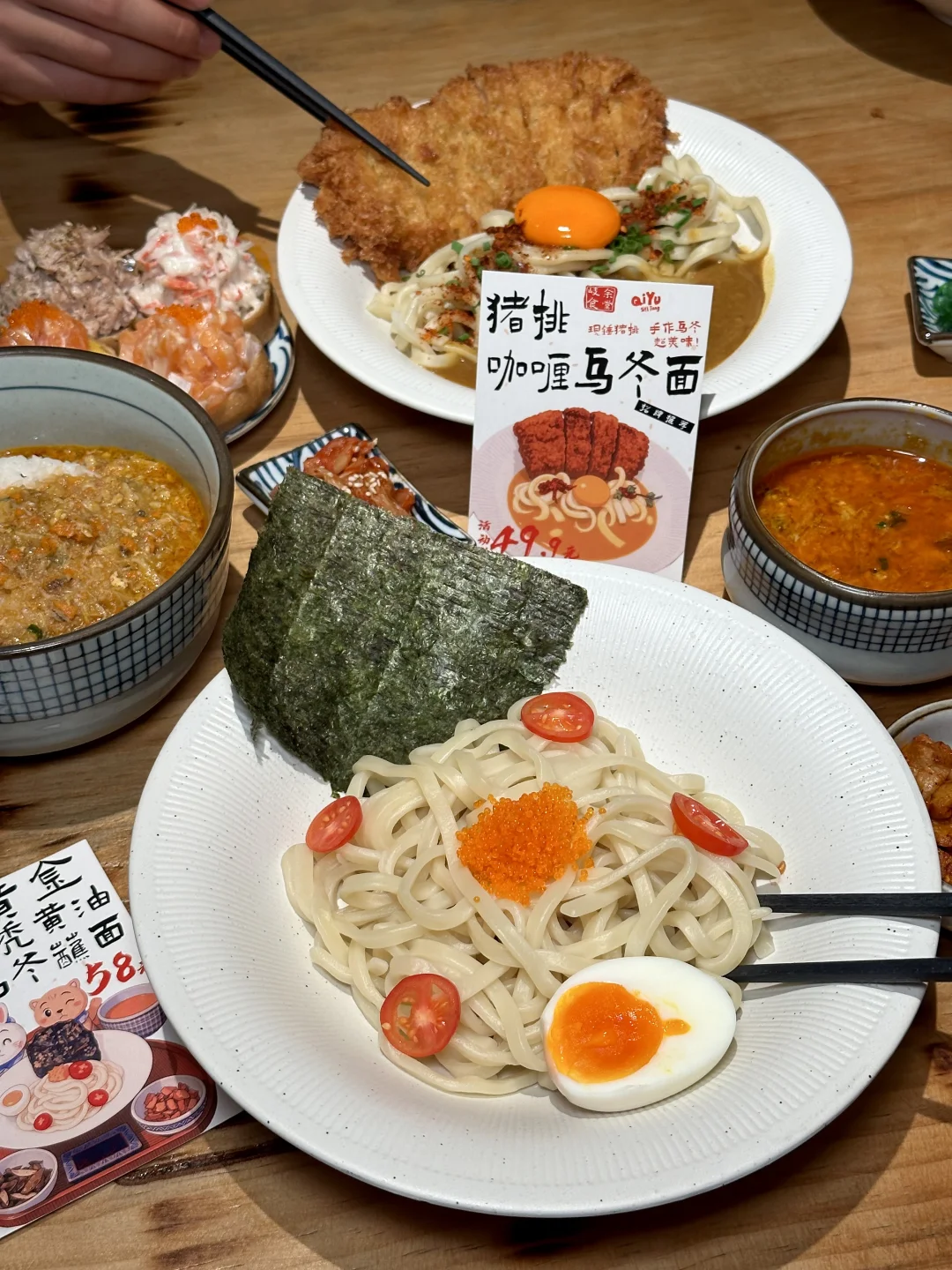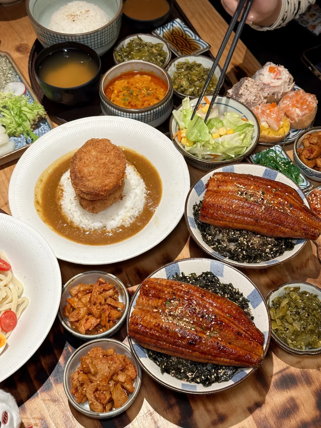 都去吃这个双层和牛肉饼饭!!!外层炸的tree tree的,里面肉饼很厚实,牛肉是7分熟的,所以很嫩很嫩!厚蛋鳗鱼饭真的是每次都会点,刚好遇上了这个季节超美味的蟹黄饭和蟹黄面,把我们4个吃爽了hhh,人均60左右的小食堂,值得跟好闺蜜反复去吃!!!