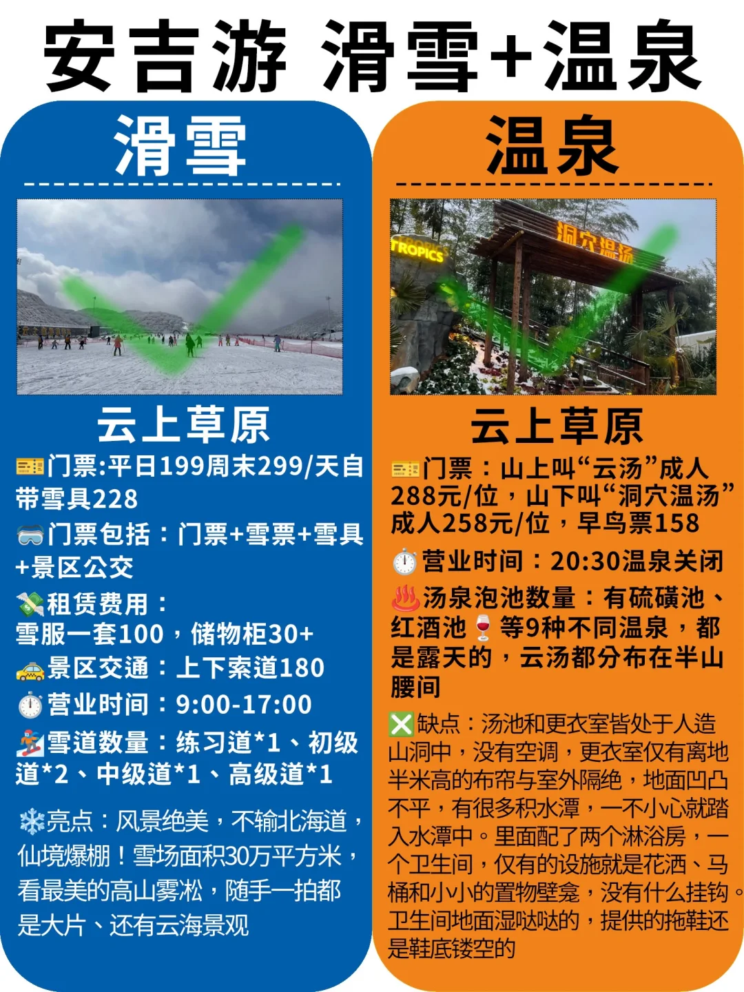 ✅ 云上草原滑雪场:位于云上草原旅游度假区内,是华东地区面积醉大的滑雪场之一,拥有30万平方米的雪场。设有2高级道➕3中级道➕2初级道。