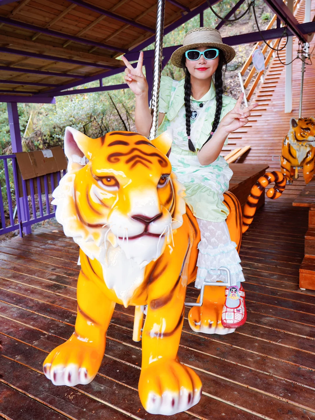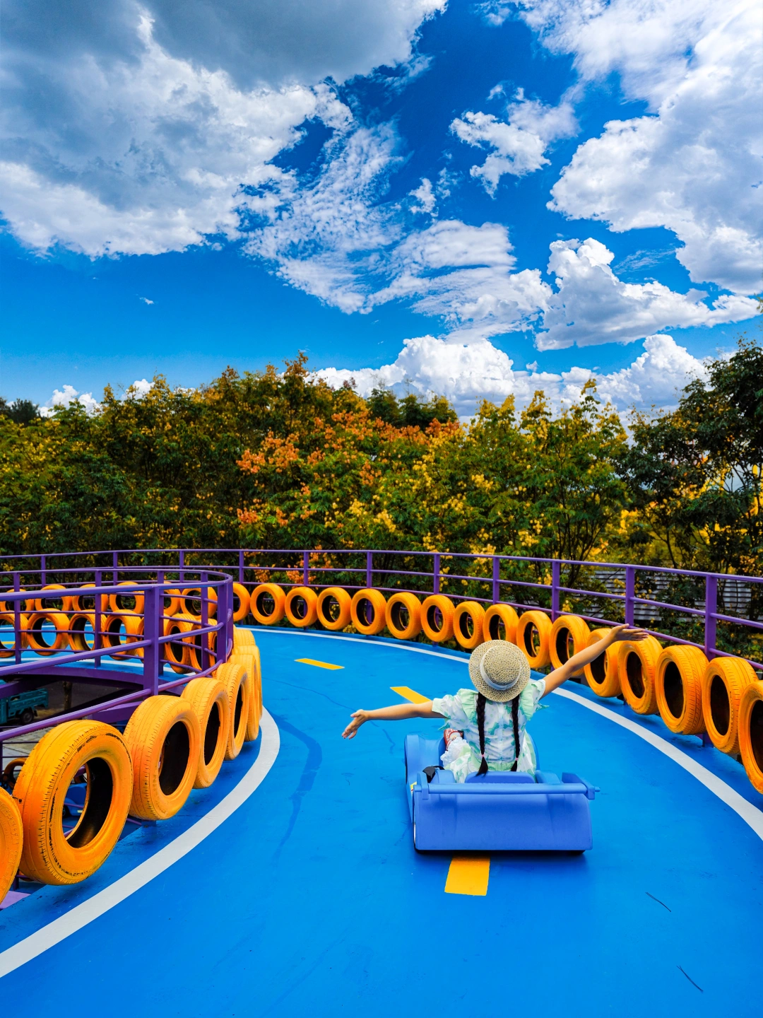 🎡欢乐世界游玩项目敲多!🈶️旋转木马、摩天轮、过山车…现在还 新 出 了 老鹰山滑板车,大小朋友都能玩,可以坐“老虎”🐯上山,到山顶后,就坐在滑板车上一路 俯 冲,林间穿梭的感觉太好玩啦~