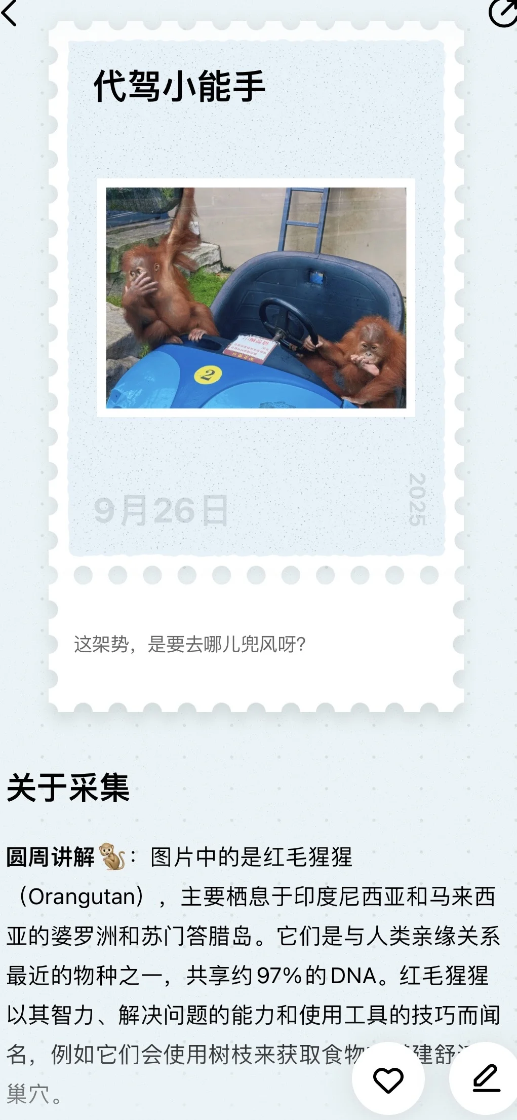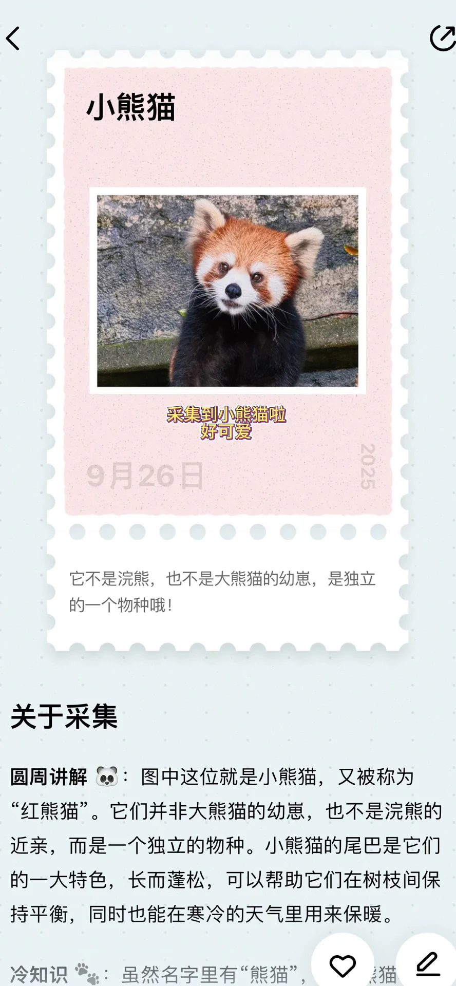 🐻动物园窝敲爱!秋高气爽,动物都更活跃了~小熊猫萌化我啦!狂拍800张!熊敲会营业,还会站起来拜拜👋互动,羊驼、斑马也能互动,200多种动物根本看不过来…咱可以用圆周旅迹新出的采集各种小动物哦,还会解读名称呢,说不定还能收到镭射卡,我采集了小熊猫,不要太可爱啦[派对R]