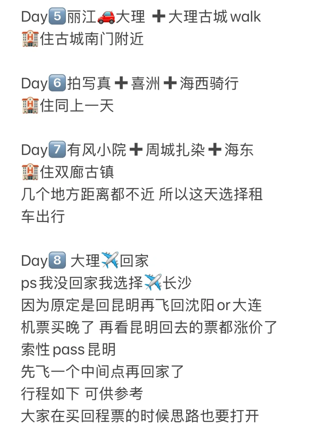 tip4️⃣大理出行 在海西这面玩 打车(去喜洲是didi拼车便宜很多)海西生态廊道里面主要是骑行 去海东选择的租车(👟程定的 没踩雷 体验感挺好 异地还车 正好第二天开到机场还车)
