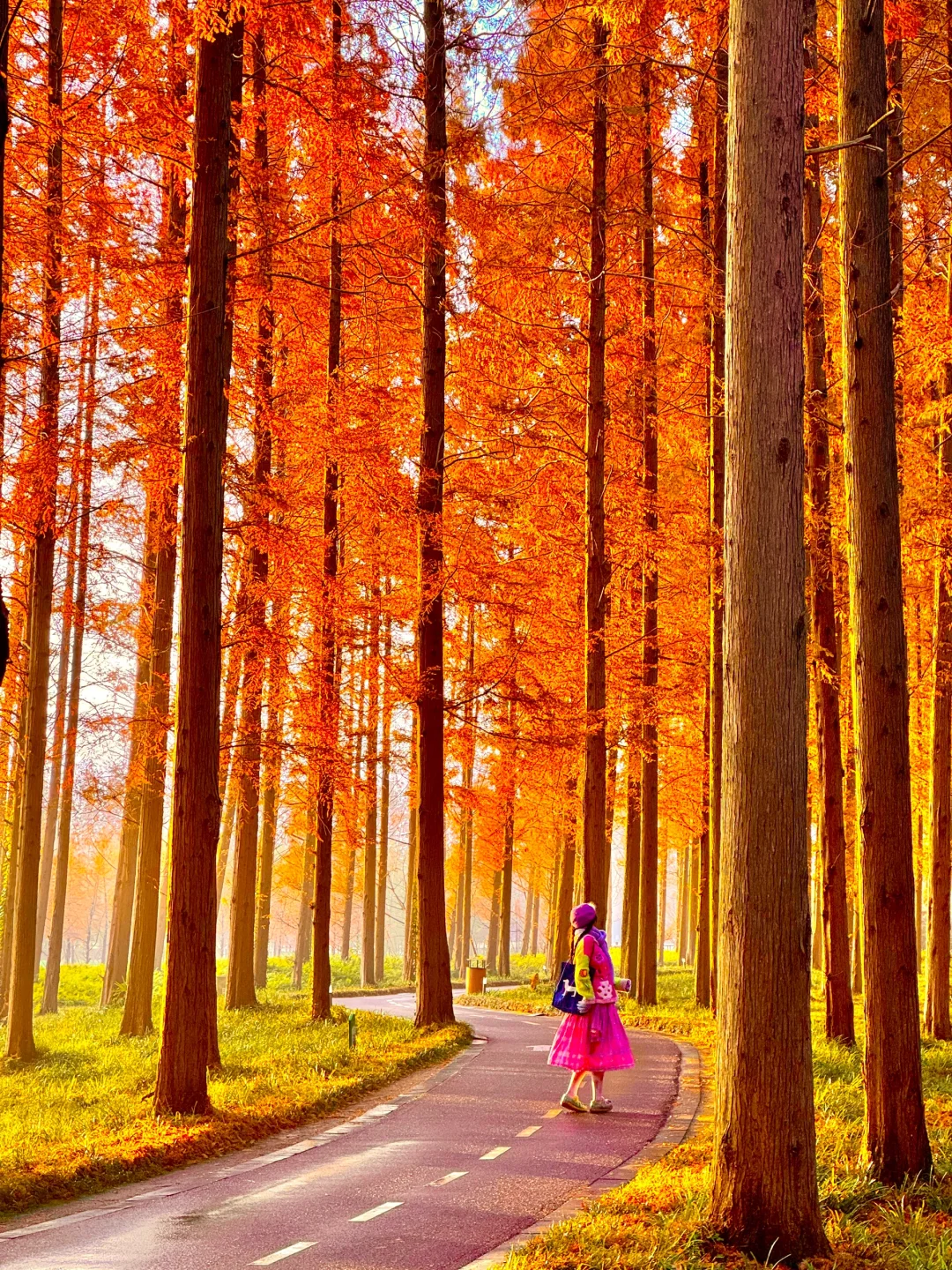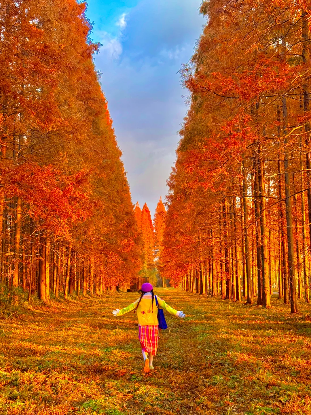 从入口进来就是,不过里面有很多杉树小道拍照都好看