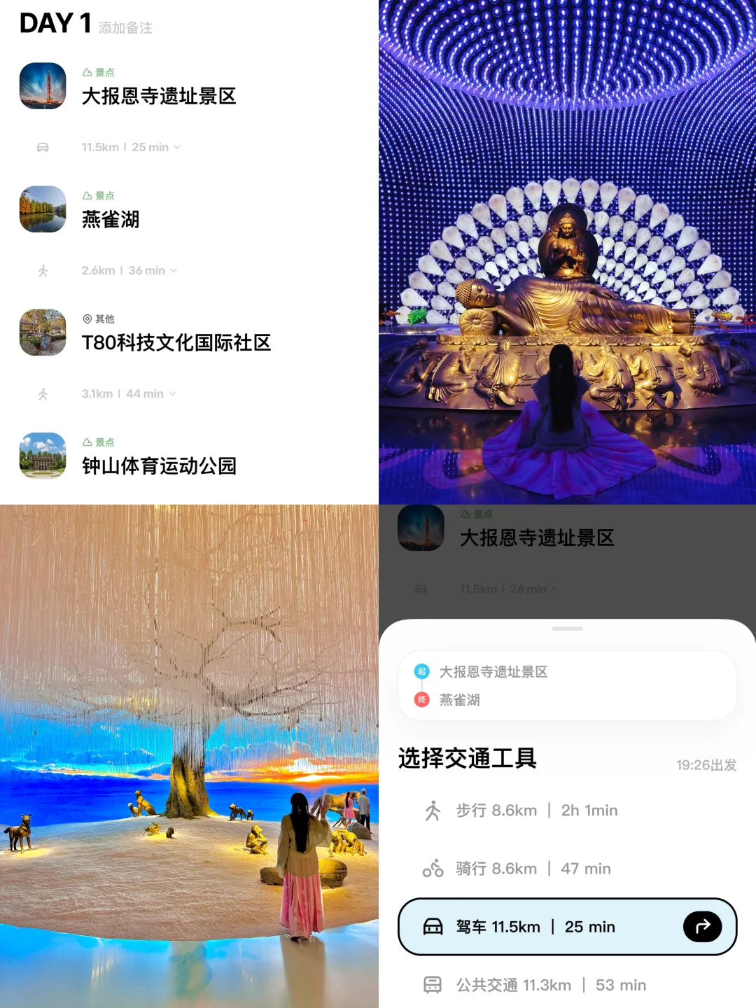 出来玩我会用规划行程,太适合J人啦,还可以直接复制上的攻略,自动生成路线,还能一键优化!各个景点之间距离和用时都一目了然,还可以切换不同交通~还能邀请好友一起编辑规划路线