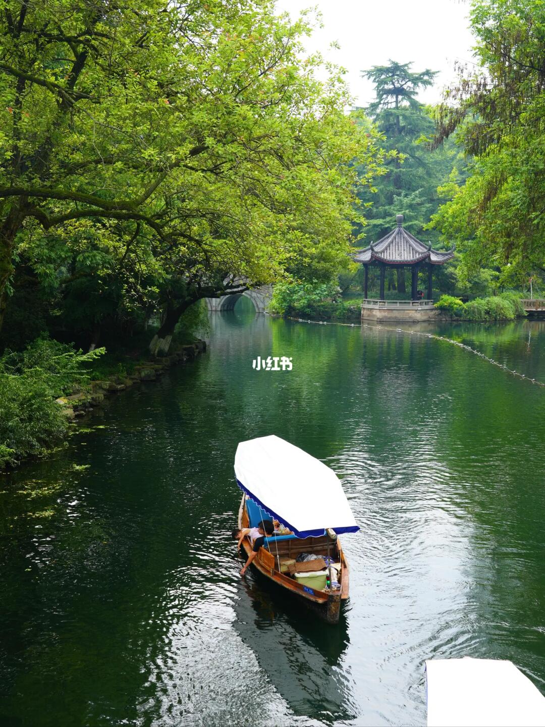 👆步行几分钟到 ,这里可以坐船上到三潭印月岛