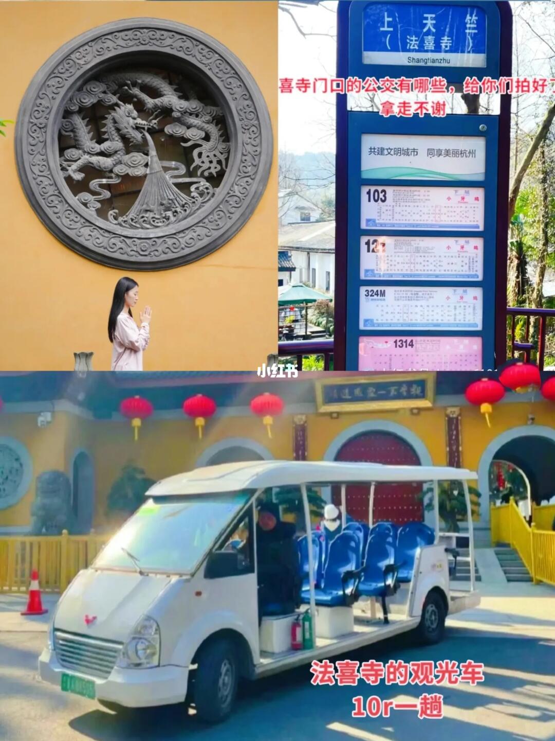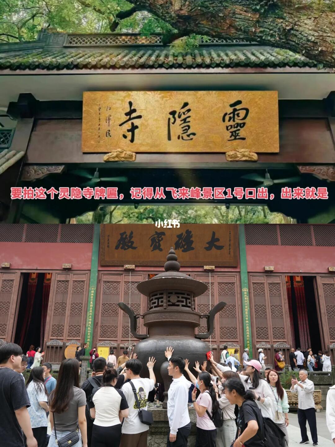 然后门口坐观光车(10r)到 1号门,打卡灵隐寺牌匾,再去边上的7号门进 👍人少避堵