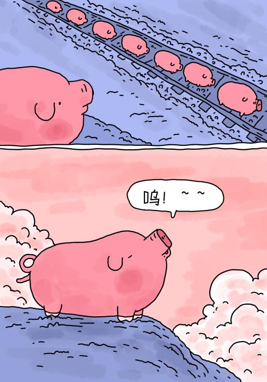 这篇的画面是在火车站候车的时候浮现的,站台上很多人来来往往,轨道上长长的列车驶过,“哐哐”的声音是现实与理想撞击的回响。我们排着队走上轨道,愉快地离开站台,迷茫地走向远方。轨道从旷野上穿过,旷野是轨道的方向,也许,人生不是列车,是一只猪。 治愈系插画 漫画 原创漫画 治愈 治愈漫画 焦虑 打工人 社畜 人生 可爱 你希望人生是? [投票]