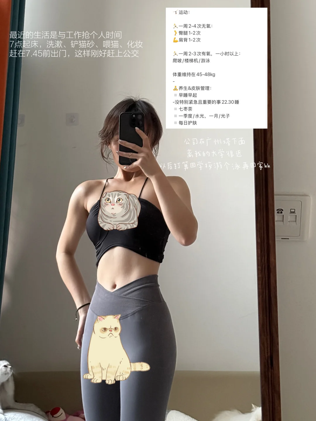 7点起床,洗漱、铲猫砂、喂猫、化妆
