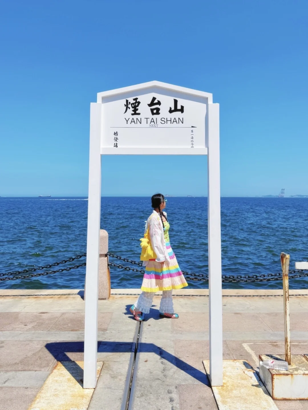 打卡“烟台”大字墙!傍晚可以坐个船看海边夜景🌃