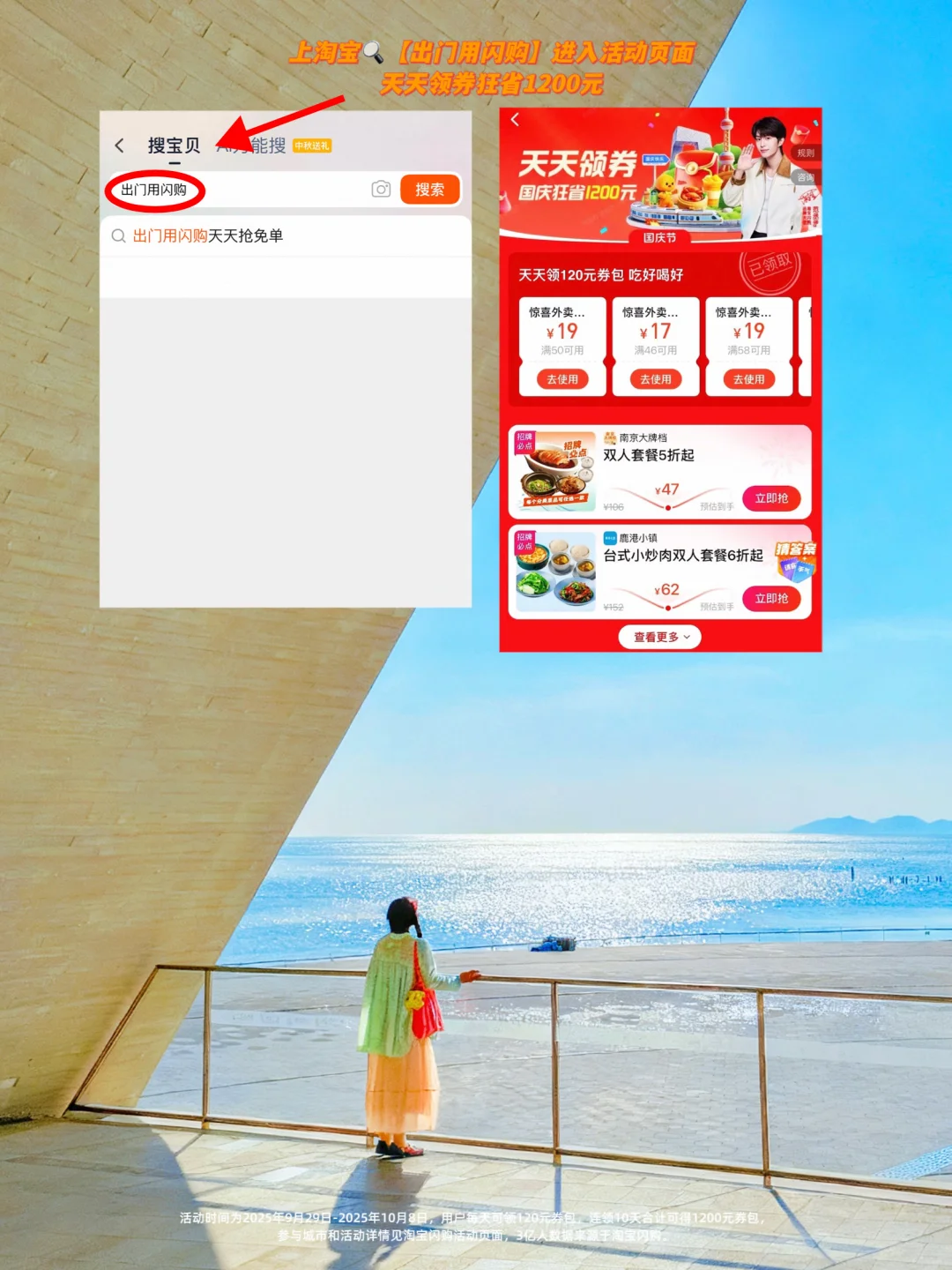 ▪️逛完一天想吃点美食,可以上淘宝🔍出门用闪购。不用排队就能喝到烟台苹果汁🍎,真的超方便。更棒的是,国庆假期能天天领券省1200,每天还可以抢免单,买伴手礼、点小吃饮料都能用,超级划算!这一次出门用上淘宝闪购,省钱又省时,我的旅行幸福感直接翻倍!