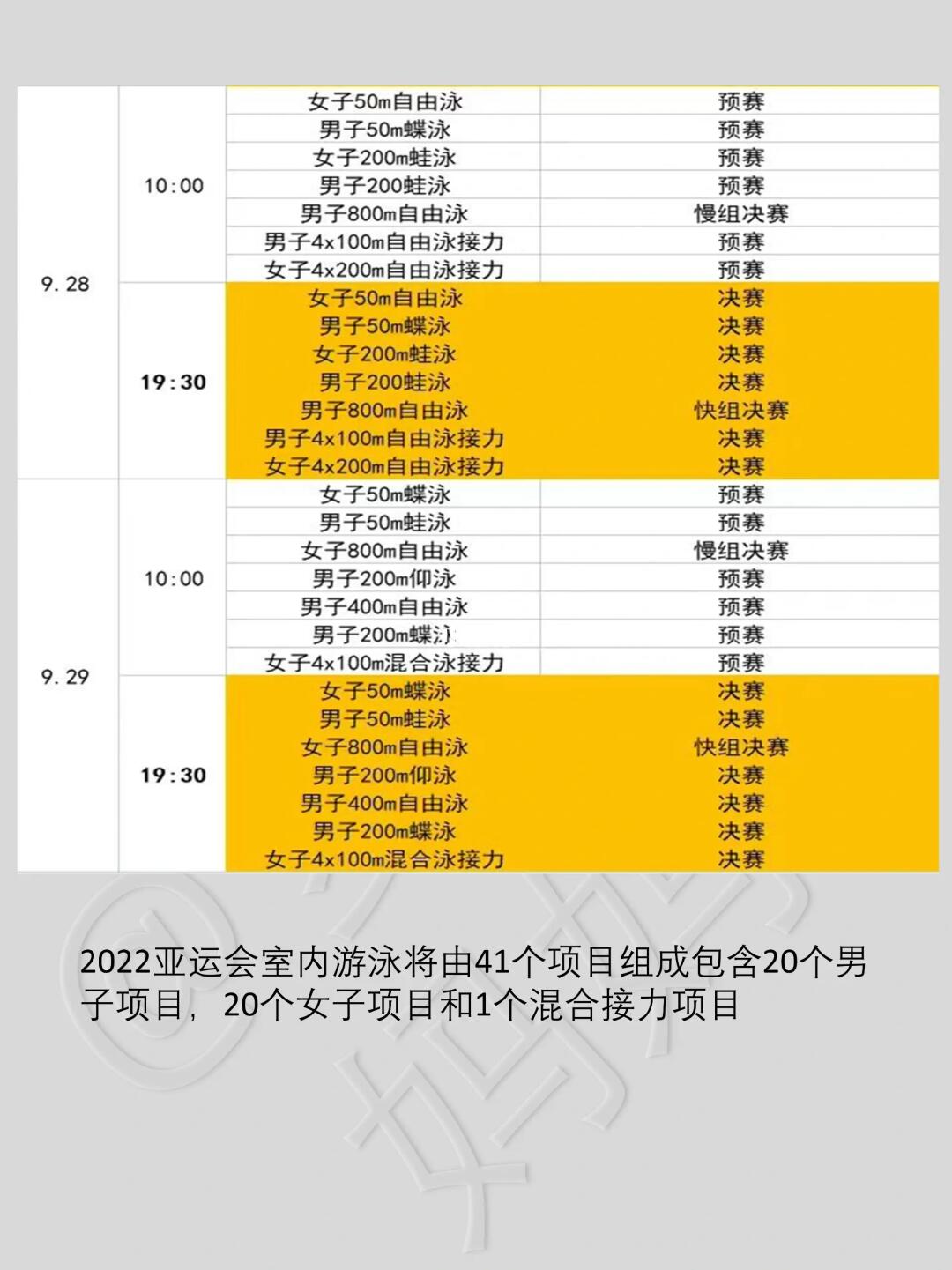 ⏰游泳比赛时间:9月24号-9月29号