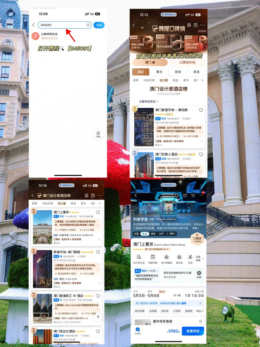 打开携程App搜索🔍【845091】查看口碑榜澳门上榜酒店,不.踩.雷的好酒店已经帮你选好啦!