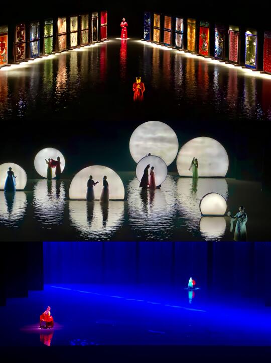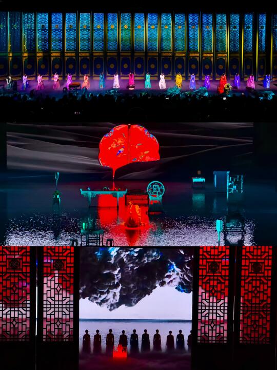 ▪️提前做了好多攻略选的「有还无剧场」,1754年的红楼梦,zui震撼的一场!坐定式观看,36扇雕花木门徐徐展开,以太虚幻镜切入,曹雪芹视角围绕十二金钗的判词重新解读,整个剧是一直置身于水中的!舞美光影美轮美奂!