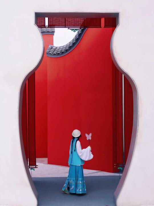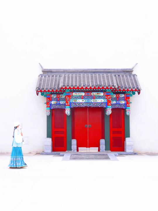 ▪️尽量国风或汉服穿搭,浅色或红色比较好出片