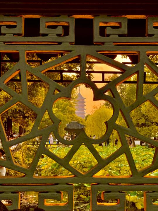 苏州博物馆和拙政园靠着,苏博需要提前预约!拙政园可上午去,园林很大,拍照的点很多,不过日落后的鸳鸯馆花窗光影挺绝的!
