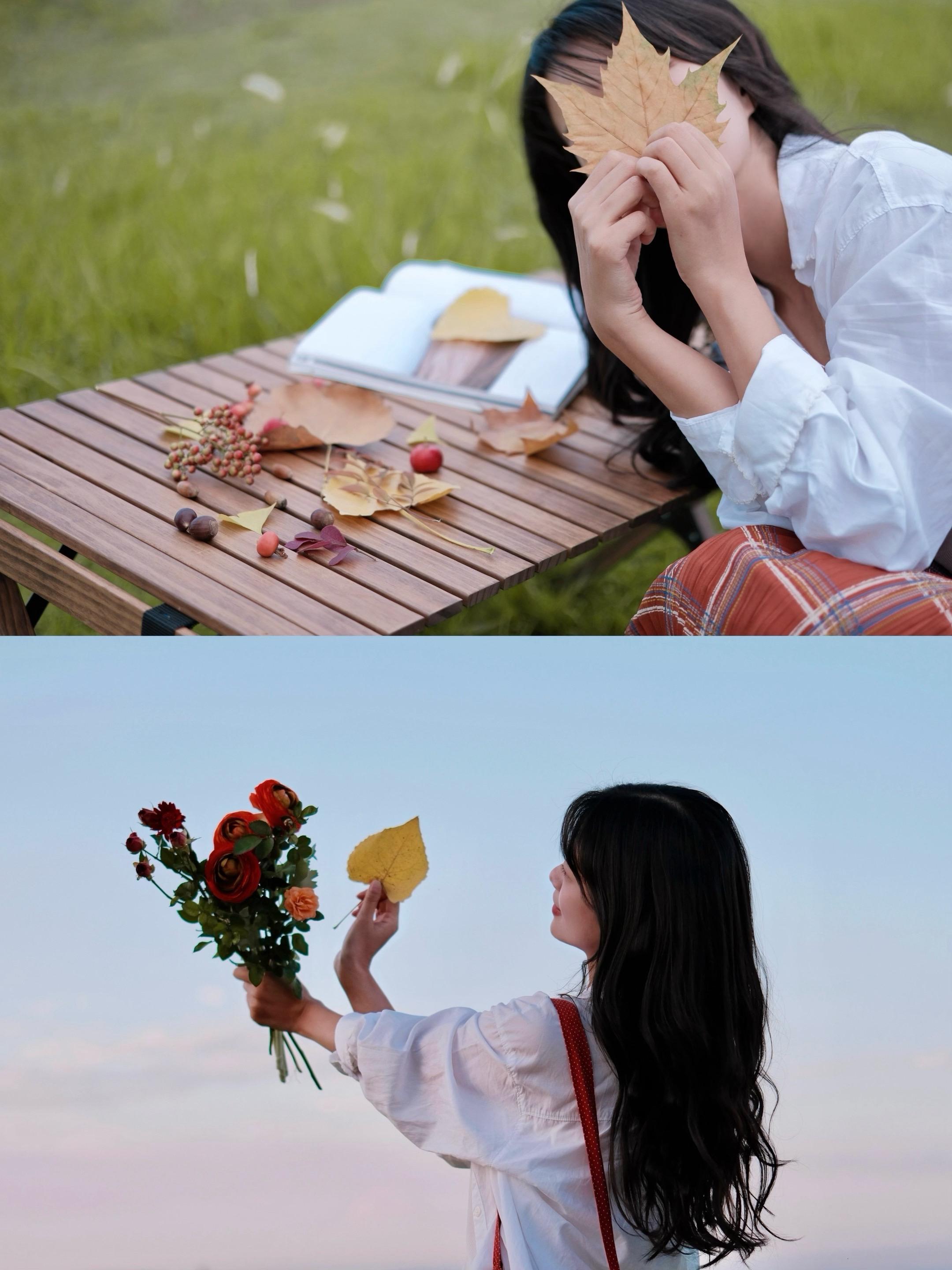 秋日文艺氛围感|“不卡建模”的拍照姿势。秋天啦,捡一片落叶,带一束花 ...