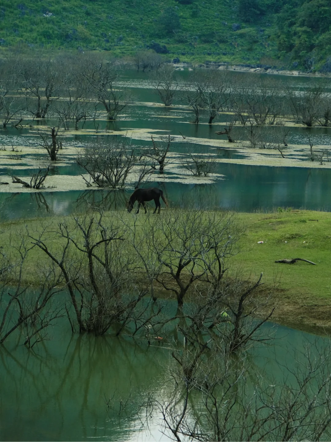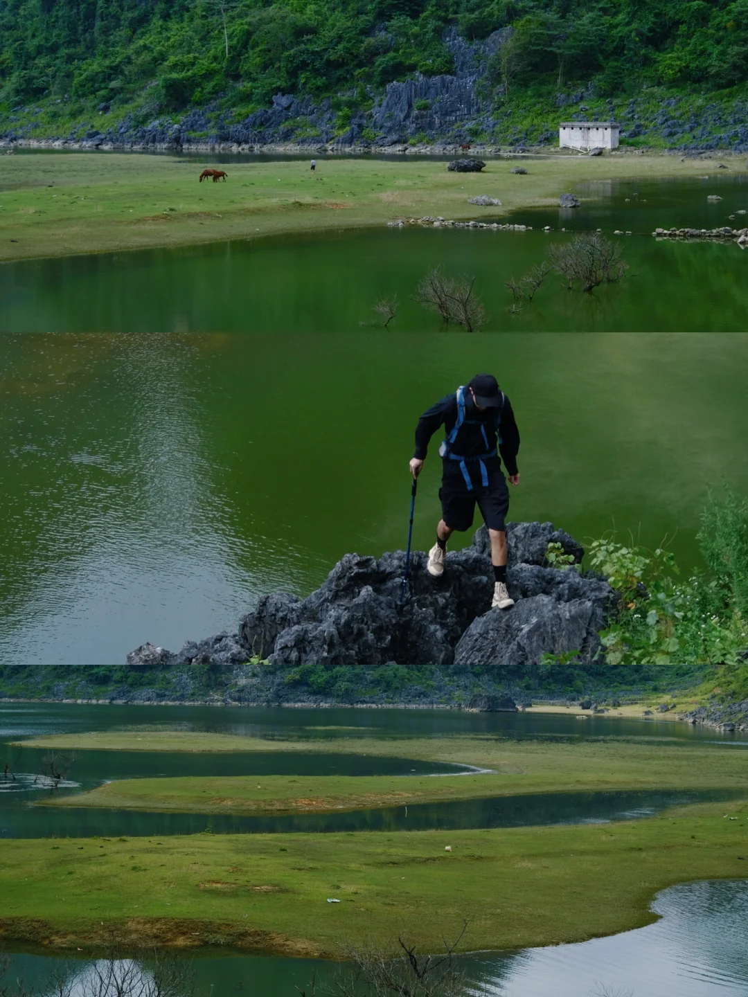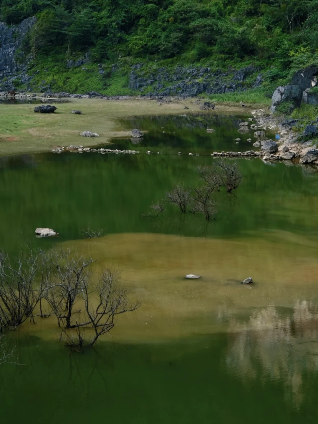 在广西百色市德保县 隐藏着一处如诗如画的世外桃源 「陇卡赖」 这里 绿水潺潺 牛羊成群 枯树点缀 构成了一幅生动的山水画卷 让人仿佛置身于一个遗世独立的仙境 湖水清澈见底 碧绿如翡翠 仿佛是大自然最纯净的眼泪 静静地躺在群山的怀抱中 微风吹过 水面泛起层层涟漪 波光粼粼 美不胜收 在陇卡赖的广阔草甸上 牛羊成群 它们或低头觅食 或抬头远眺 悠闲自在 这些牛羊不仅是这片土地上的居民 更是大自然的一部分 徒步是探索陇卡赖的最佳方式 沿着山间小道前行 每一步都充满了惊喜与发现 你可以看到山间溪流潺潺 感受微风吹过脸颊的温柔 在这里 你可以尽情地欣赏大自然的壮丽与神奇 感受那份宁静与美好 // 广西攻略·户外露营 户外爬山·崇左旅行 北海桂林·阳朔百色 小众旅行·户外徒步 𝑇𝑖𝑝𝑠: 1. 导航:广西百色德保县陇卡赖 2. 交通:由于陇卡赖地理位置较为偏远,建议自驾前往。最后路段有一段是山路,建议在平地停车,然后步行前往,步行10分钟即可到达。 3. 环保:离开时请务必带走自己的垃圾,共同保护这片美丽的净土。