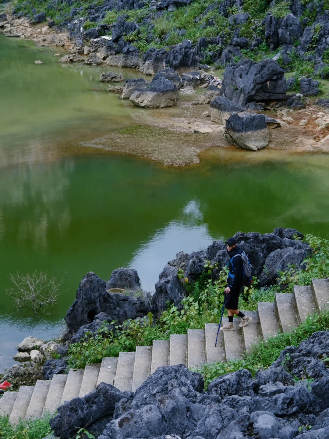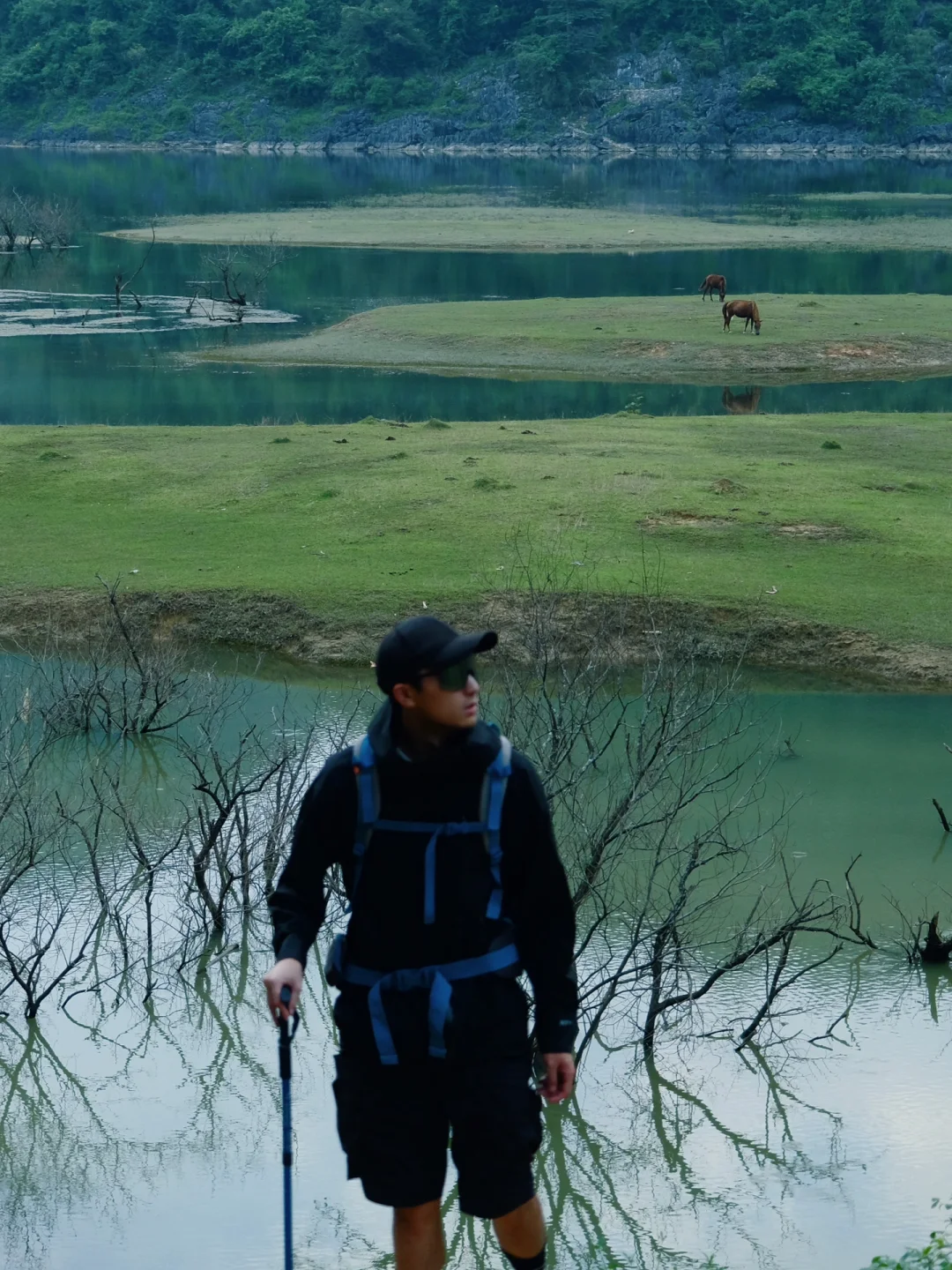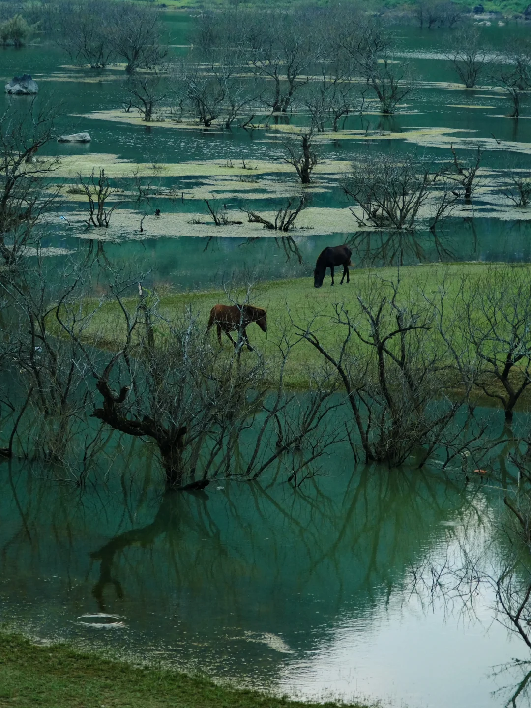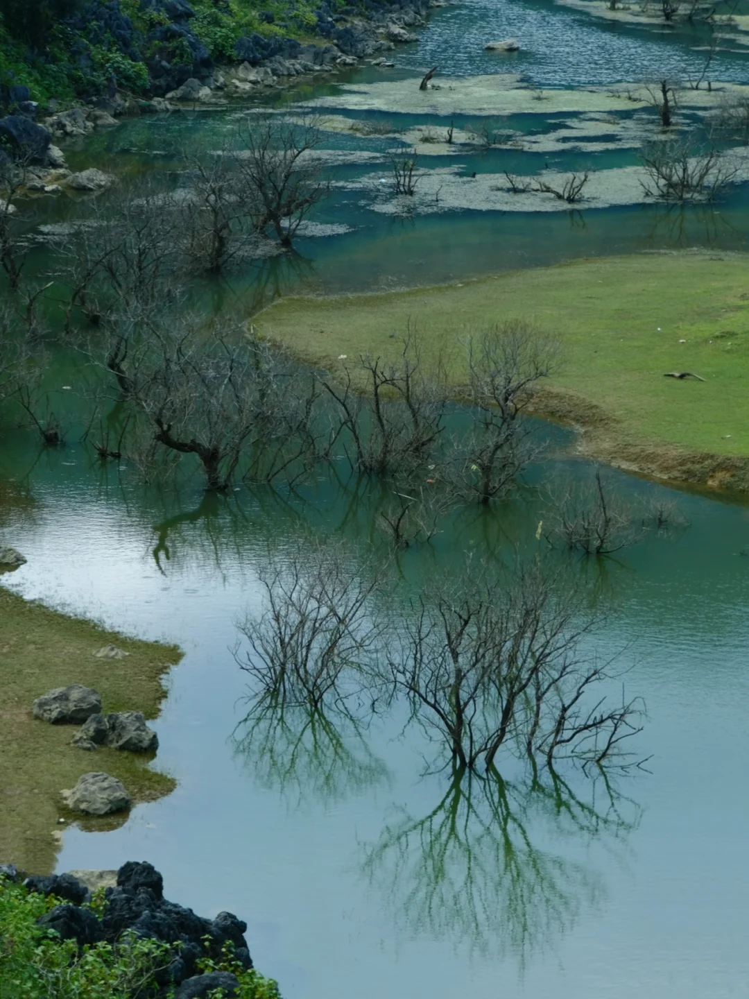 在广西百色市德保县 隐藏着一处如诗如画的世外桃源 「陇卡赖」 这里 绿水潺潺 牛羊成群 枯树点缀 构成了一幅生动的山水画卷 让人仿佛置身于一个遗世独立的仙境 湖水清澈见底 碧绿如翡翠 仿佛是大自然最纯净的眼泪 静静地躺在群山的怀抱中 微风吹过 水面泛起层层涟漪 波光粼粼 美不胜收 在陇卡赖的广阔草甸上 牛羊成群 它们或低头觅食 或抬头远眺 悠闲自在 这些牛羊不仅是这片土地上的居民 更是大自然的一部分 徒步是探索陇卡赖的最佳方式 沿着山间小道前行 每一步都充满了惊喜与发现 你可以看到山间溪流潺潺 感受微风吹过脸颊的温柔 在这里 你可以尽情地欣赏大自然的壮丽与神奇 感受那份宁静与美好 // 广西攻略·户外露营 户外爬山·崇左旅行 北海桂林·阳朔百色 小众旅行·户外徒步 𝑇𝑖𝑝𝑠: 1. 导航:广西百色德保县陇卡赖 2. 交通:由于陇卡赖地理位置较为偏远,建议自驾前往。最后路段有一段是山路,建议在平地停车,然后步行前往,步行10分钟即可到达。 3. 环保:离开时请务必带走自己的垃圾,共同保护这片美丽的净土。