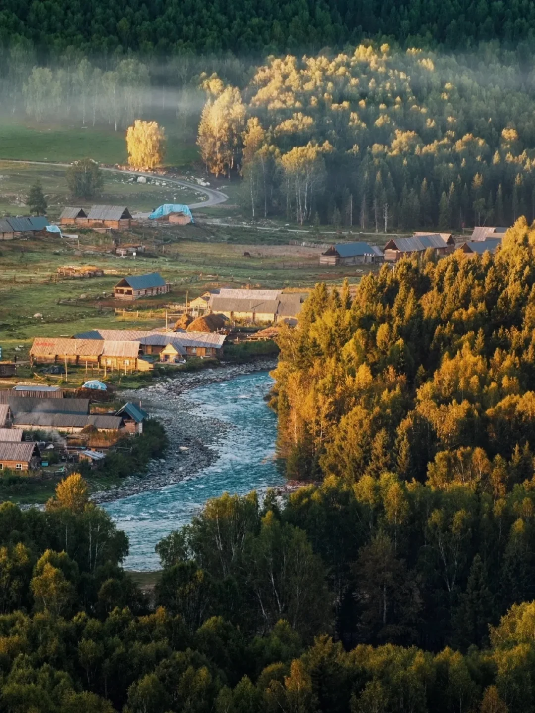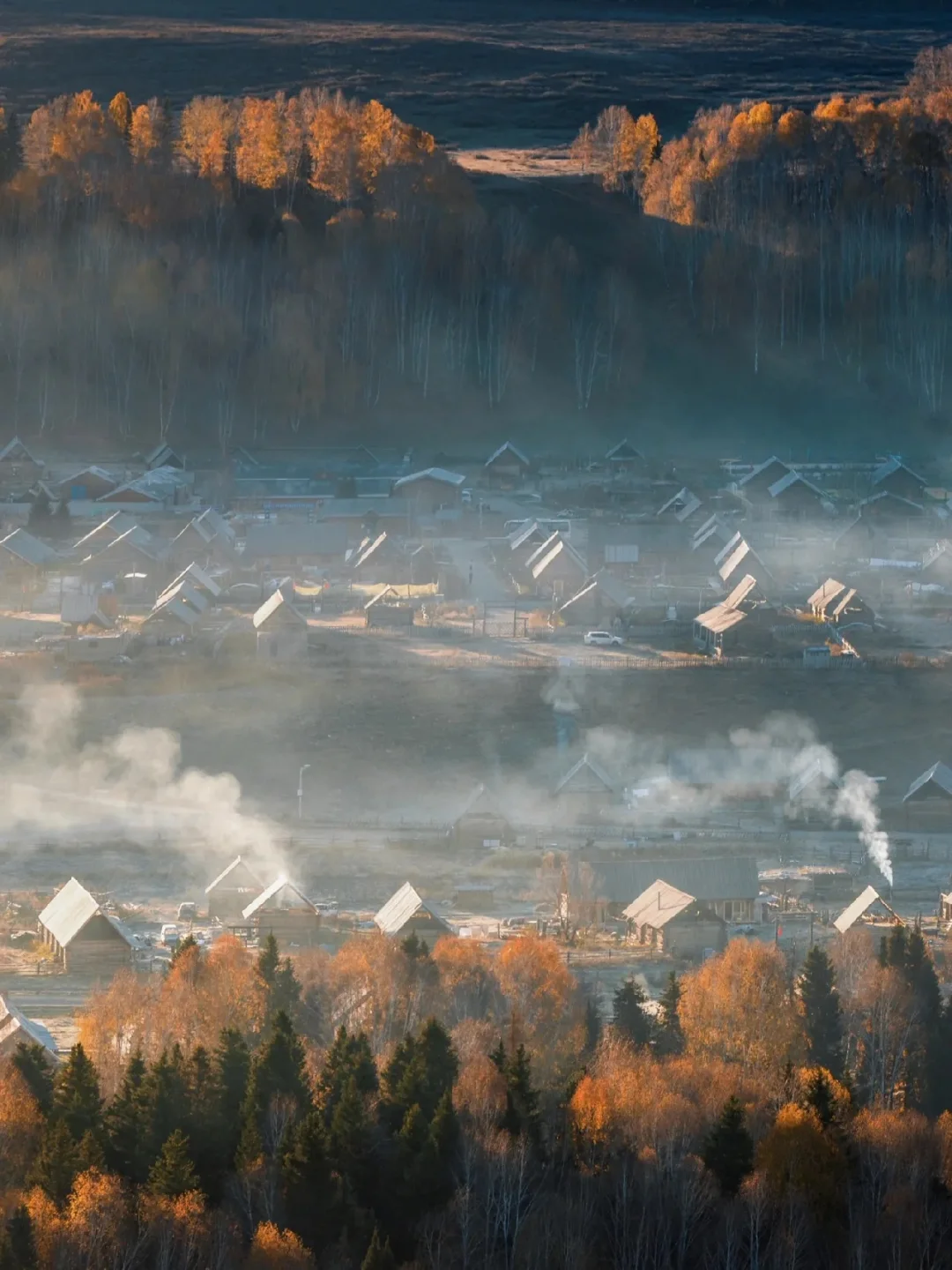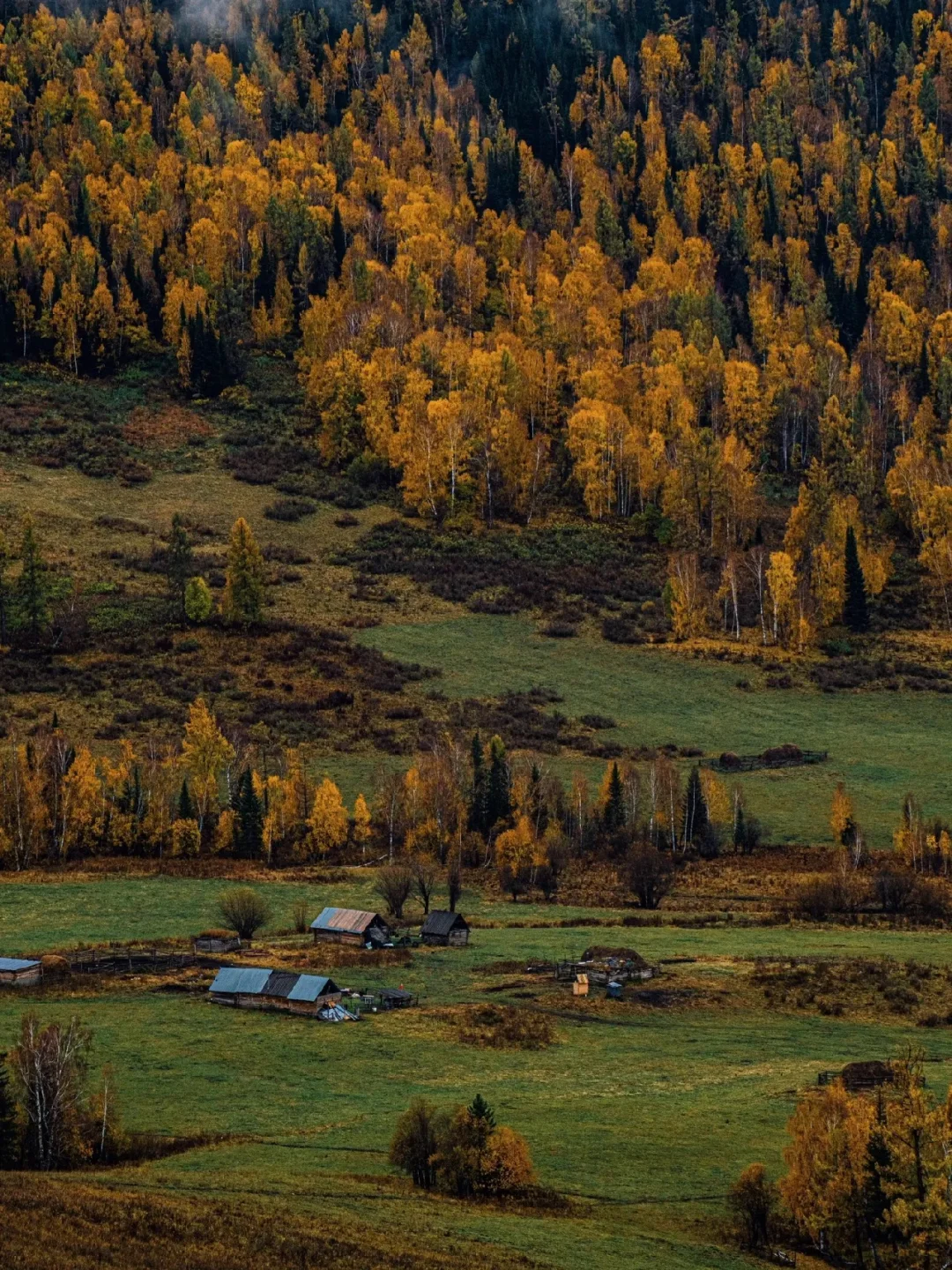 📍禾木 《我的阿勒泰》 引爆了新疆的夏天 但秋季的阿勒泰 才是真正的美到没有天花板 如果说,秋天只能去一个地方 那一定是北疆 那里藏着整个秋天最美的梦 一到秋天 这里就是一个斑斓的童话世界 炊烟从梦中升起 牛羊从村落走来 几百户人间的小村落 与世无争的生活 我们穿梭于一栋栋古朴木屋之间 仿佛穿越了时光的长廊 最终抵达了这片被自然宠爱的净土 神秘而美丽的村落 禾木村 这是仅存的3个图瓦人村落中最大的村庄 是中国最美古村落之一 在这里 生活节奏会不自觉慢下来 能够真正放松的去感受大自然与原住民的淳朴