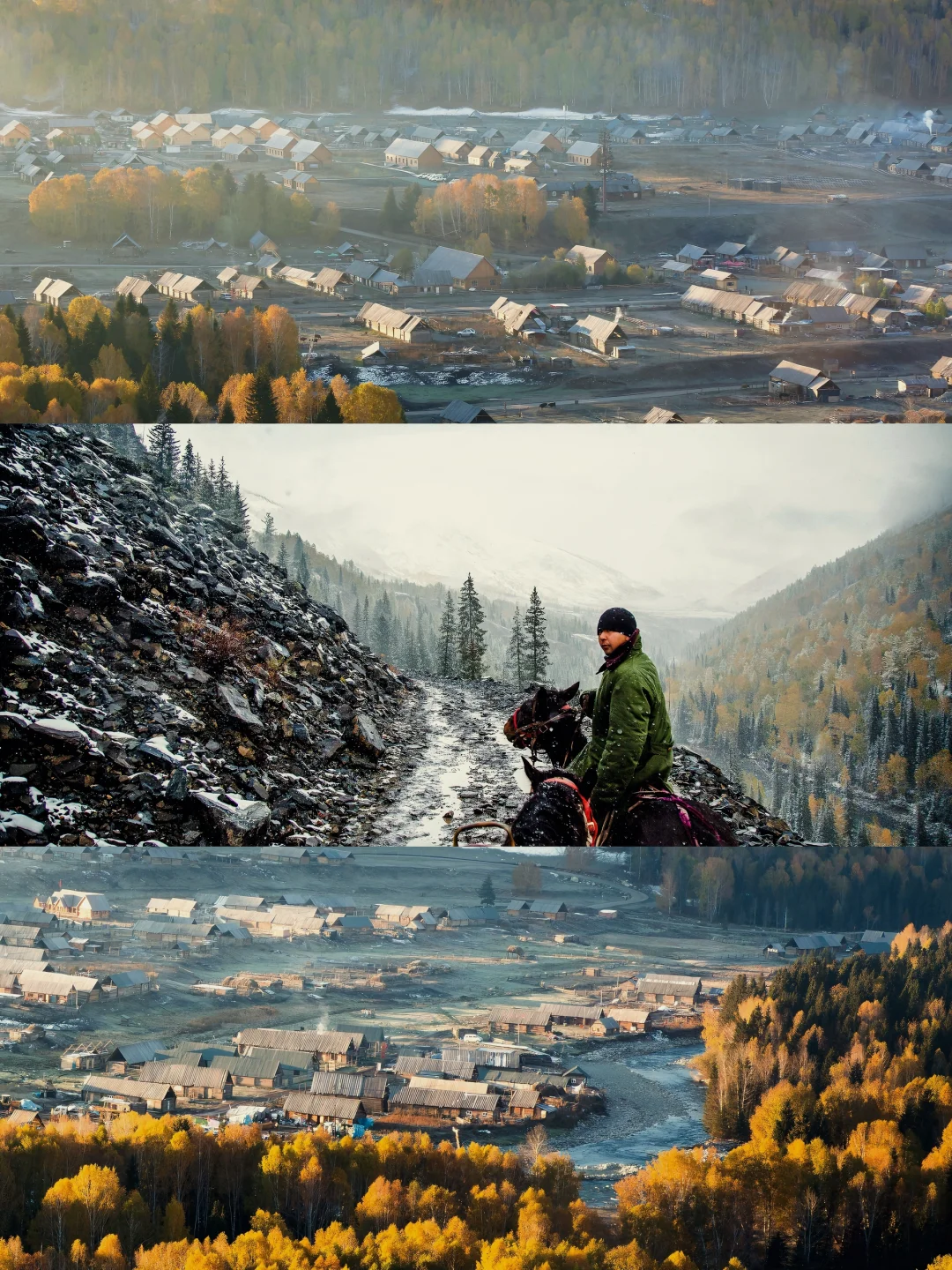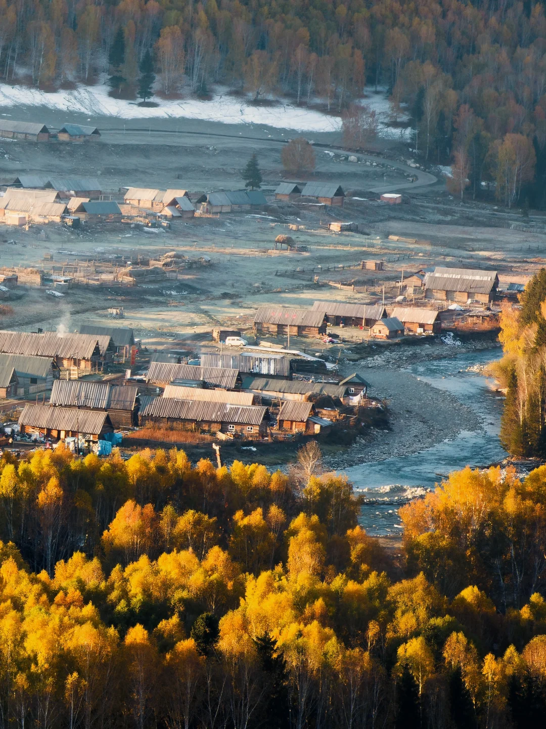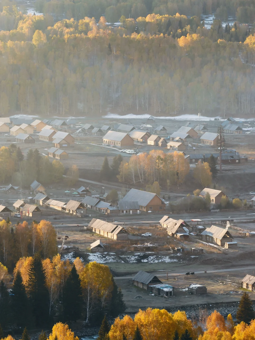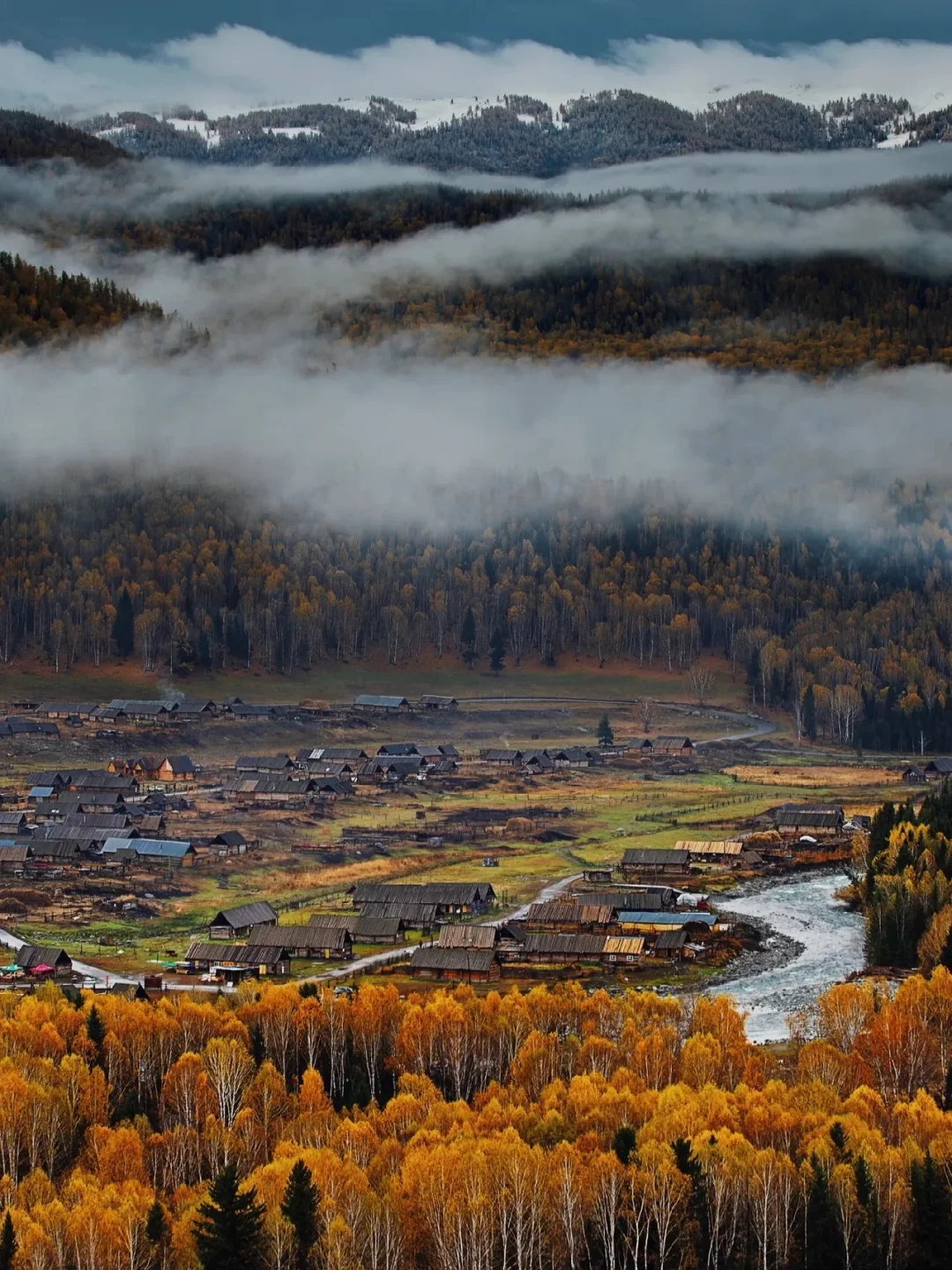 📍禾木 《我的阿勒泰》 引爆了新疆的夏天 但秋季的阿勒泰 才是真正的美到没有天花板 如果说,秋天只能去一个地方 那一定是北疆 那里藏着整个秋天最美的梦 一到秋天 这里就是一个斑斓的童话世界 炊烟从梦中升起 牛羊从村落走来 几百户人间的小村落 与世无争的生活 我们穿梭于一栋栋古朴木屋之间 仿佛穿越了时光的长廊 最终抵达了这片被自然宠爱的净土 神秘而美丽的村落 禾木村 这是仅存的3个图瓦人村落中最大的村庄 是中国最美古村落之一 在这里 生活节奏会不自觉慢下来 能够真正放松的去感受大自然与原住民的淳朴