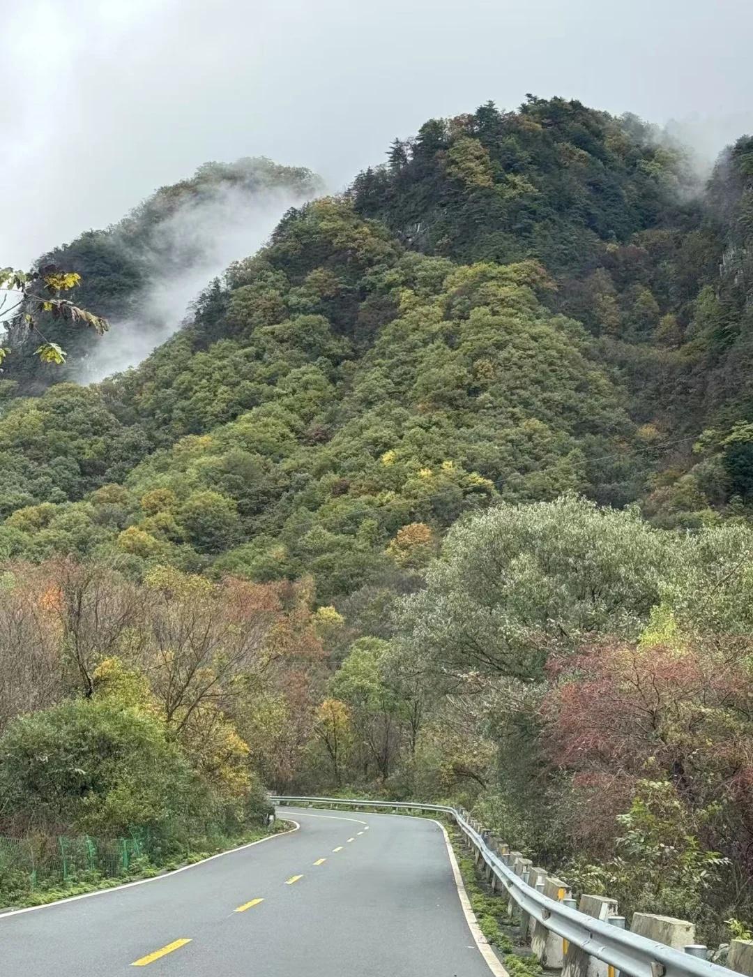 郑州自驾秦岭赏秋第四站—分水岭 分水岭这个名字,很熟悉又很遥远!上学时地理课老师反复强调:中国南北气候的分界线,粮食种植的分水岭…等等很多的分界限! 早上九点从广货街镇出发不到40分钟就到了山顶。温度一下降到了2℃!羽绒服、帽子、厚秋裤全副武装到位。山顶的植被也开始一副秋天的景色:五彩斑斓,层林尽染!就是雾气蒙蒙的,拍不出来效果。有点小遗憾! 山顶不对外开放,只能在界碑处打个卡!拍照时碰到一位郑州老乡,一个人骑一辆摩托车,真是佩服他!他下一站也是走太洋公路,和我的路线一样,希望能遇到他!