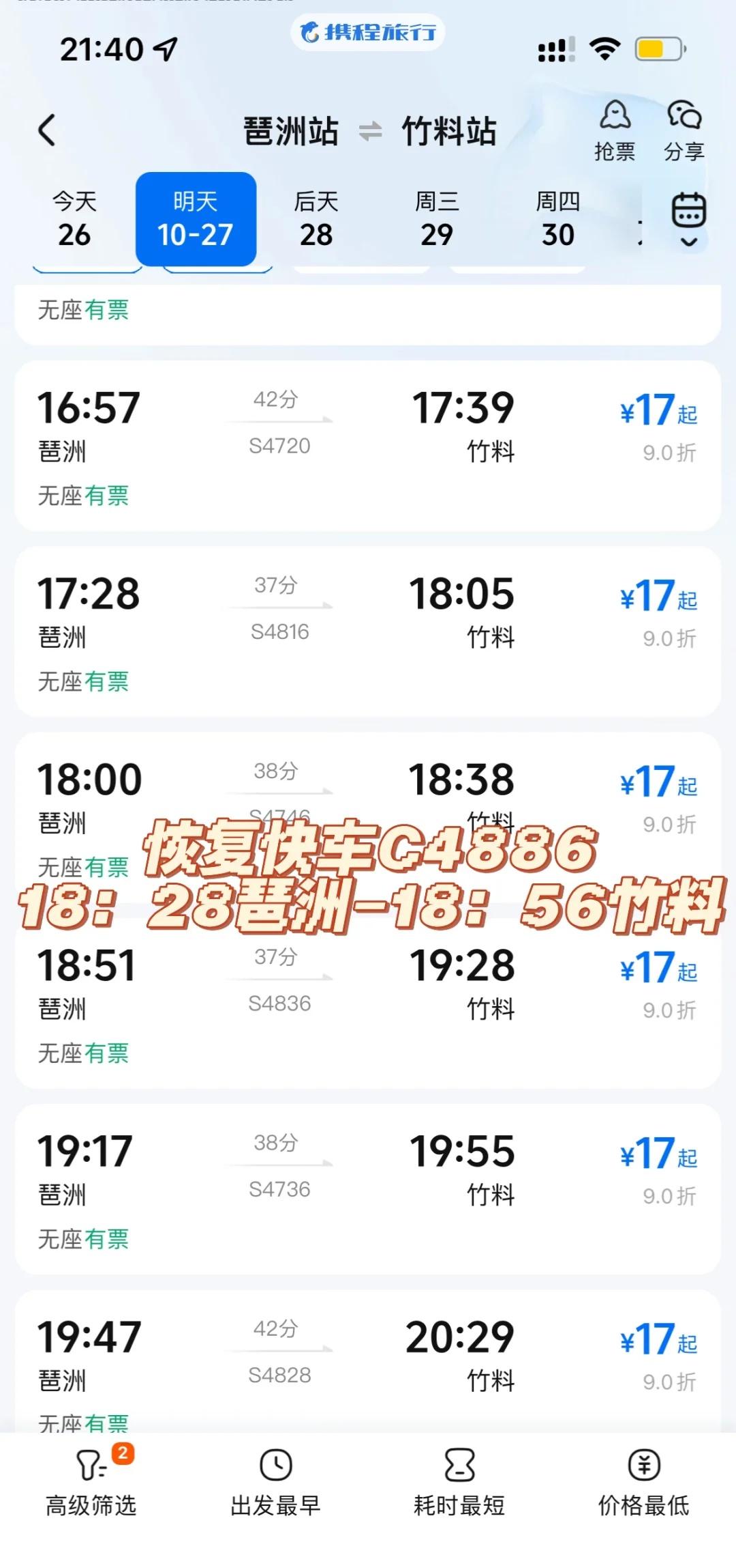 一觉醒来,天塌了!广东城际牛马班次没了! 10月份刚开通城际,立刻买了20次卡!感恩广佛城际安排了朝九晚六班快车!有了上班的尊严! 没想到,次卡刚用了几次,列车时刻表大调整![流泪][流泪][流泪] 竹料取消快车,两趟牛马班次,调没了,调没了! 【建议恢复,牛马班次】 【竹料】目前全天还有一个快车班次!调整到成8:40到琶洲的快车。 【琶洲】增加一班原18:28快车班次。 牛马的命也是命,求有关部门看到后采纳! 竹料可以是慢车站!牛马班次给我们留着吧![流泪][流泪][流泪][流泪][流泪] 广东城际