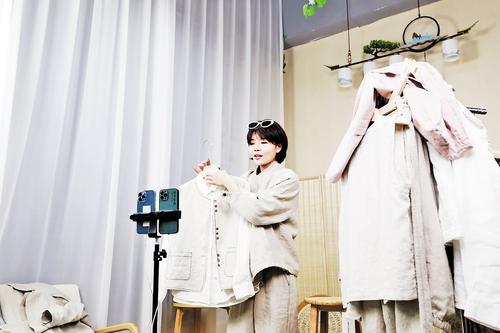 在永清县缦熙服装服饰有限公司直播间,主播一边试穿展示新款服装,一边介绍面料成分。今年5月,该公司在北京亦庄·永清高新区注册成立,主要业务涵盖互联网销售、批发零售等。“高新区聚集众多服装工厂和商贸公司,让我们在品牌合作洽谈、货源组织上更便捷高效,推动线上销量逐月攀升。”该公司负责人张耀攀说,他计划在现有基础上继续增加各类商务男装,进一步丰富销售品类。