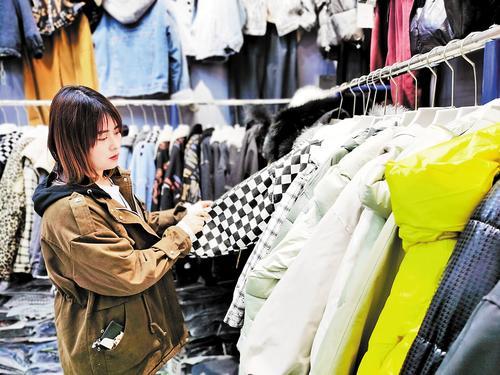 10月23日,在永清县云裳小镇,顾客挑选服装。