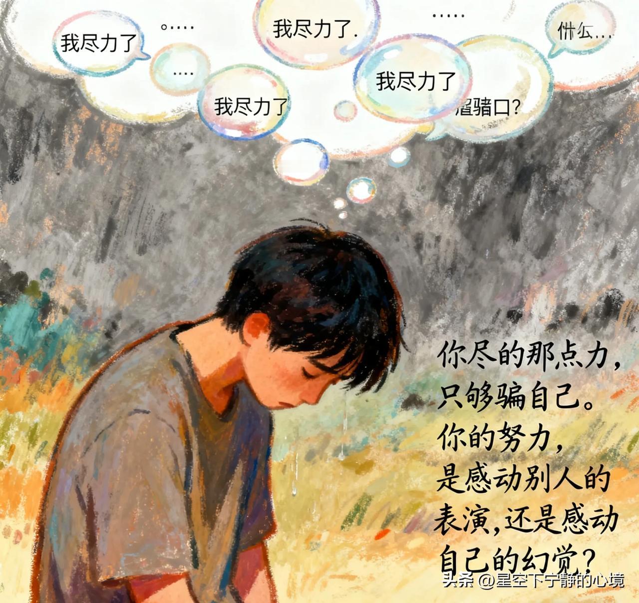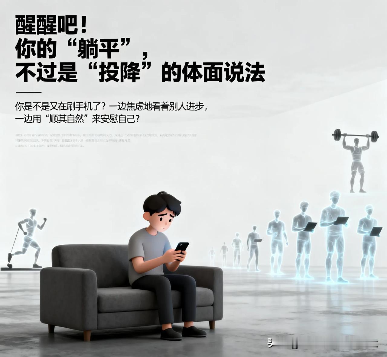 醒醒吧!你的“躺平”,不过是“投降”的体面说法 1:关于“我尽力了”——你尽的那点力,只够骗自己 “我真的很努力了。” ——说这话之前,扪心自问: 你的努力,是感动别人的表演,还是感动自己的幻觉? 是熬到深夜却效率低下的磨洋工,还是真正解决了问题、提升了技能? 你的“尽力”,是全力以赴,还是“尽力”让自己舒服一点? 真相是: 真正的努力,是结果不会陪你演戏的。你分数没提高,你项目没完成,你身材没变化,那就是没努力到位,别找借口。 2. 关于“我没时间”——你的时间,都喂了手机 “太忙了,没时间健身,没时间看书。” 那你每天刷短视频、追剧、逛淘宝的那两三个小时,是天上掉下来的? 你不是没时间,你只是把时间优先给了那些不用动脑、即时爽快的事情。 你把时间花在哪儿,结果的花开在哪儿。你花时间在娱乐上,就别指望收获成长的果实。 真相是: 时间是这个世界上最公平的东西。你把时间用成了廉价品,你的人生就别想活成奢侈品。 3. 关于“我害怕失败”——你就不怕一辈子平庸吗? “万一失败了多丢人啊。” ——请问你现在很“得人”吗?你现在就很光彩吗? 失败顶多是一时的难堪,它很快会过去。而逃避和退缩,带来的是一种持续性的、弥漫性的、伴随你一生的平庸和悔恨。 你害怕的从来不是失败,你害怕的是面对那个“原来我也可能不行”的自己。 真相是: 你因为害怕花凋零,就拒绝了所有的种子。你保护了自己,也彻底地荒芜了自己。 4. 关于“明天再开始”——你的“明天”,永远不会来 “等我准备准备,明天一定开始。” ——你的“明天”,是一个永远不会到来的骗子。它骗走了你昨天的决心、今天的行动和未来的所有可能性。 决定你人生走向的,从来不是那些“某一天”,而是每一个“今天”,每一个“现在”。你怎样过一天,就怎样过一生。 真相是: “明天再开始”,是世界上最温柔的毒药。它让你在舒适的等待中,悄无声息地废掉了。 骂完了。舒服点了吗?不舒服就对了。 这种刺痛感,是你麻木已久的神经正在苏醒。 现在,我给你一条最简单、也最有效的行动指南: 想加薪?现在就把手头那个拖行动,是碾压一切焦虑的唯一武器。 行动,也是你对自己的人生,最有力的宣言。 你的潜力,大得连你自己都害怕。但它被封印在“拖延”、“懒惰”和“借口”这三座大山之下。 现在,是你亲手把它放出来的时候了。别人的人生已经开花结果,你他妈难道甘心自己的这片地,连芽都不发吗?我们在这里,不是互相安慰,而是互相见证。