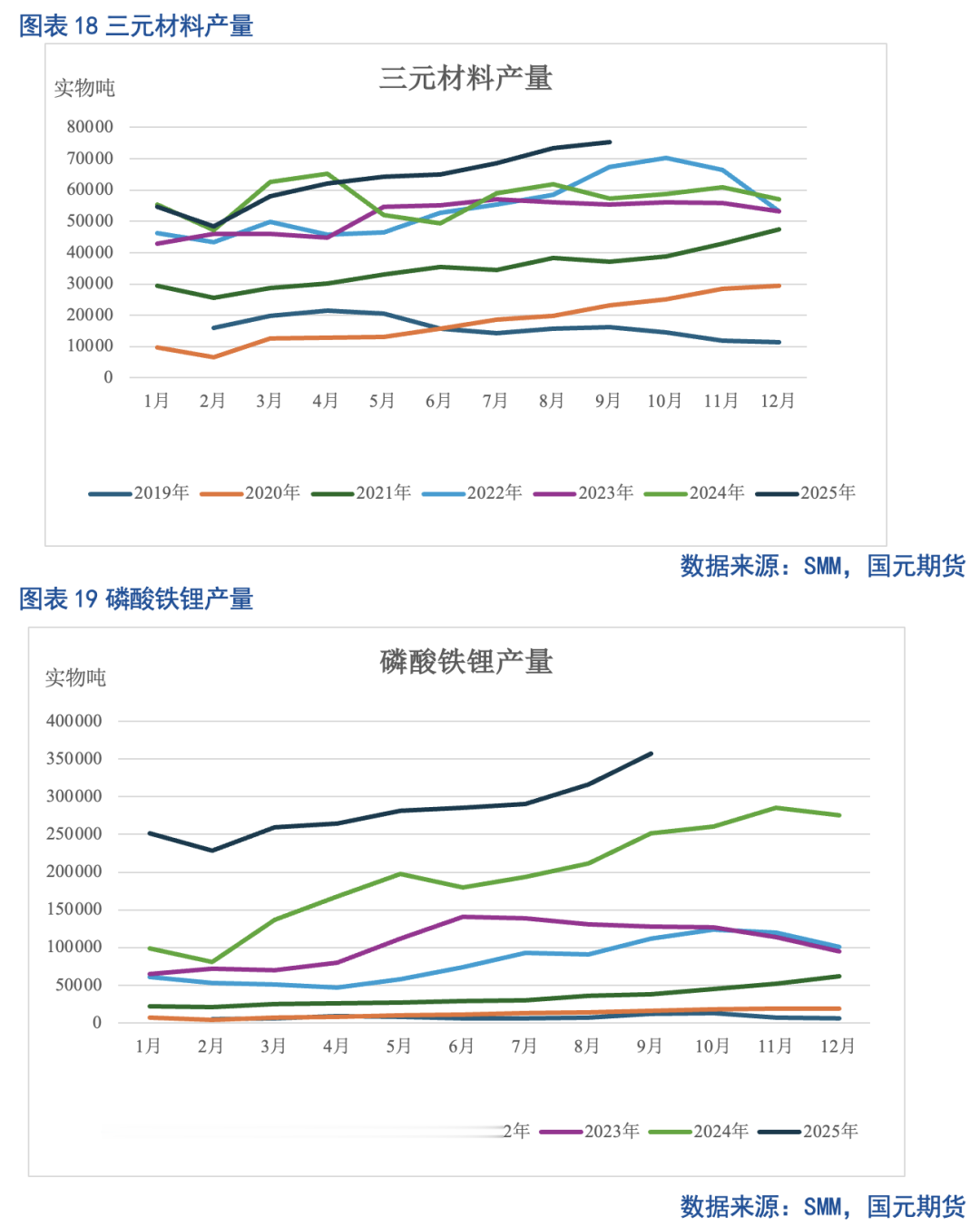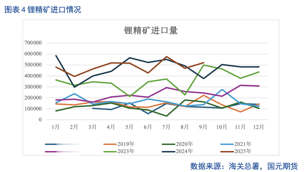 9月随着前期停产矿山原矿库存消耗,国内锂云母矿石产量环比小幅下滑约6%;另一方面,国内锂辉石矿山延续爬产,产量环比增约2%。