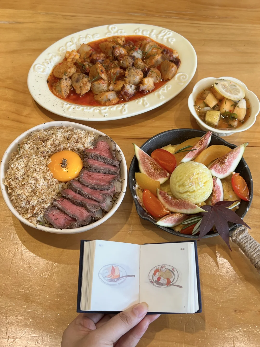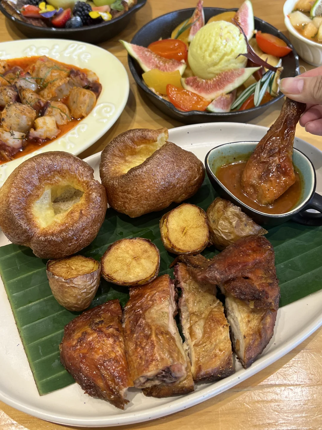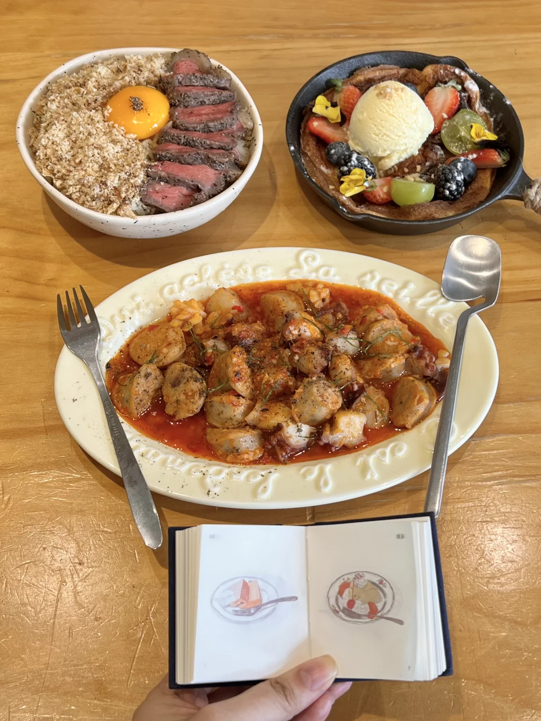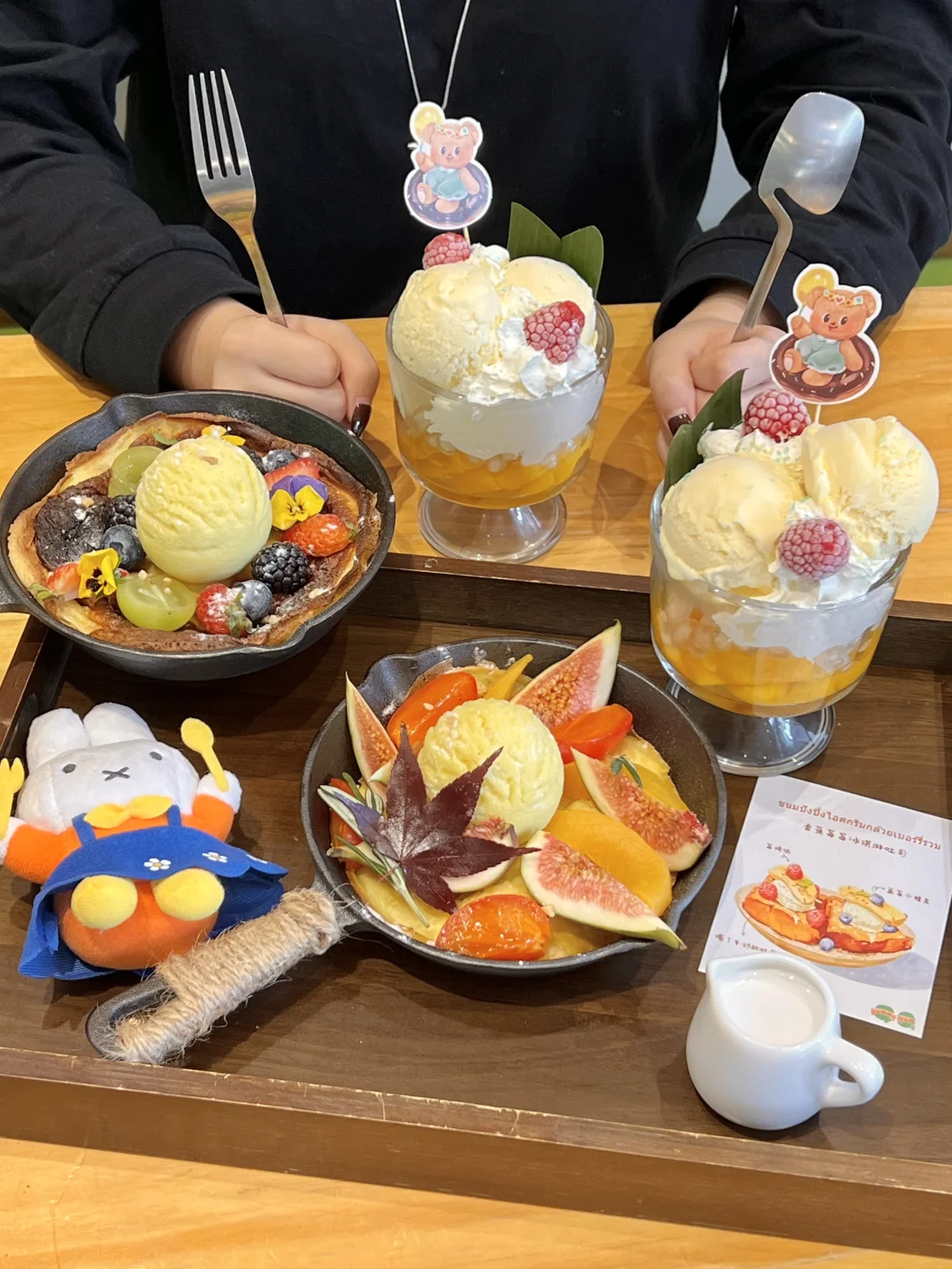 曼谷落日烤牛肉炒饭!!!真的hin满意!!牛肉很嫩,底下的炒饭会略干一点!!口味不会很重!感觉减脂期的姐妹也能吃!!! 读大学就开始吃的一家小店,老板很注重菜品的研究,每次过来都会给人惊喜!!很适合一人食或者和小姐妹聚会,价格也不贵很实在!!! 喜欢小甜甜的姐妹一定要试试他们家现烤的颜值巨高的松饼,两种口味都好好吃!!配上他们家的麦粒豆花泰奶冰!!太满足惹!!📍yummy yum泰味小馆