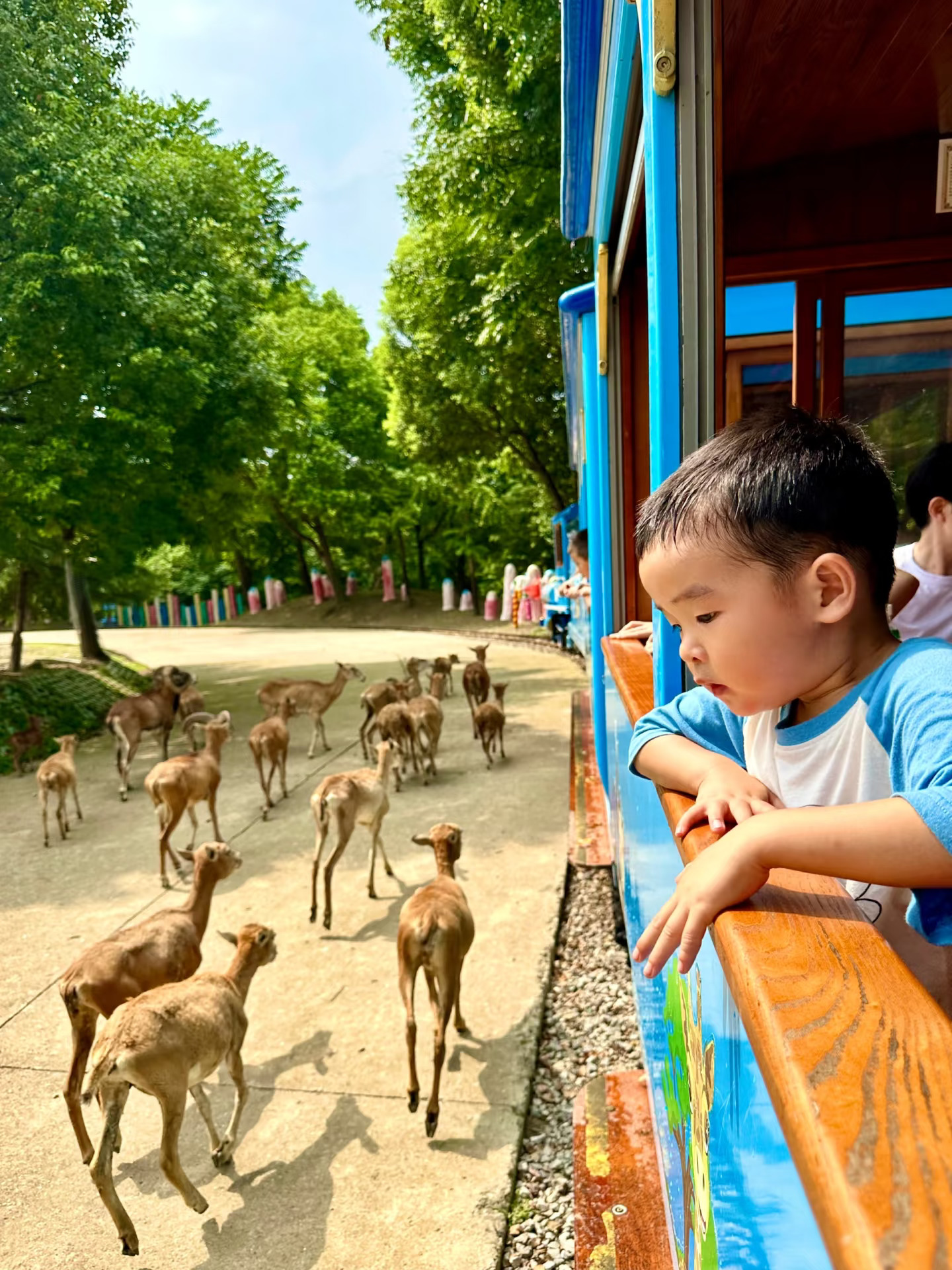 没有小朋友可以拒绝小火车!可以坐40分钟~有小鹿、斑马、鸵鸟、羊驼、盘羊、非洲狮、长颈鹿、野狼等。鹿区会停车让人投喂,羊驼区可下车投喂~小鹿和羊驼超热情,我带的两大盘胡萝卜都不够😂