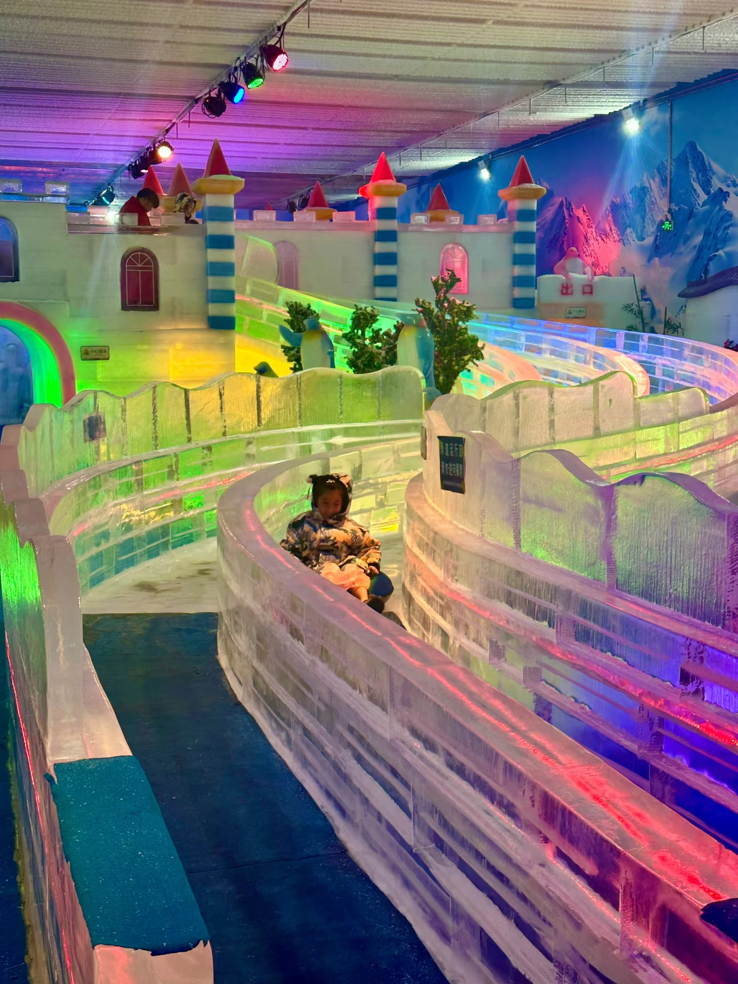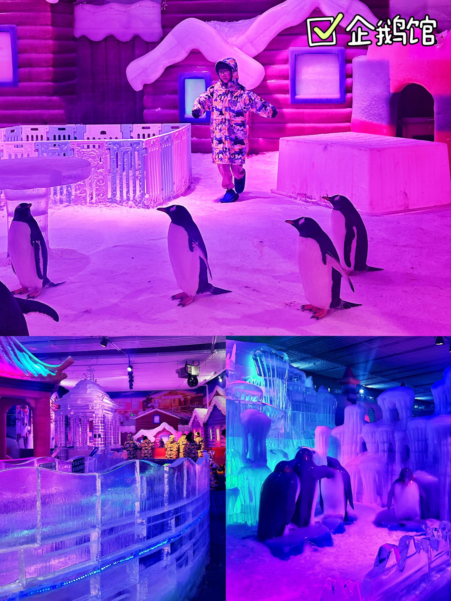 真的冰砌成的屋子!超凉爽,需要穿羽绒服进去(门口有提供)。近距离接触小企鹅,还可以坐雪圈从冰滑道上一路滑下来,太好玩啦!